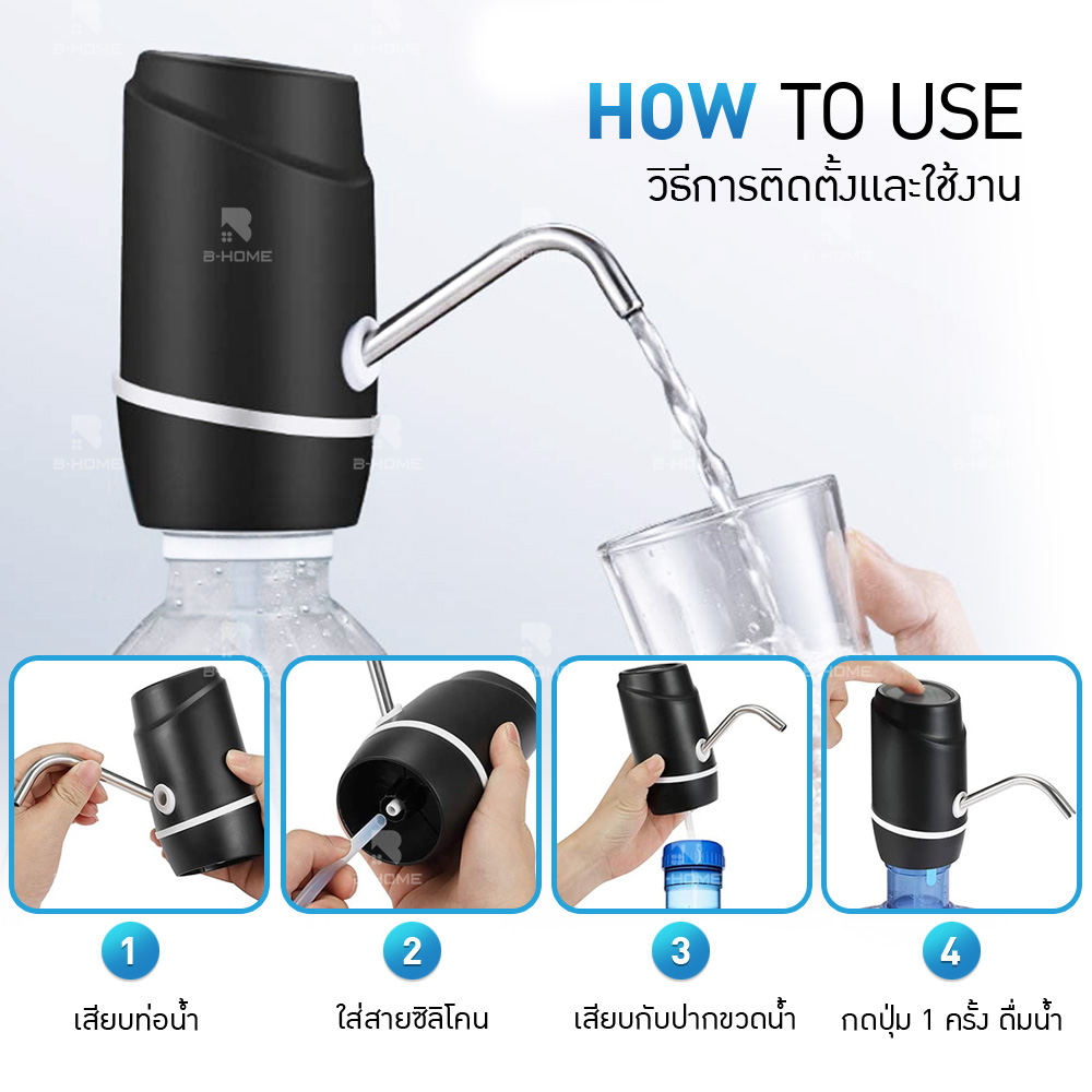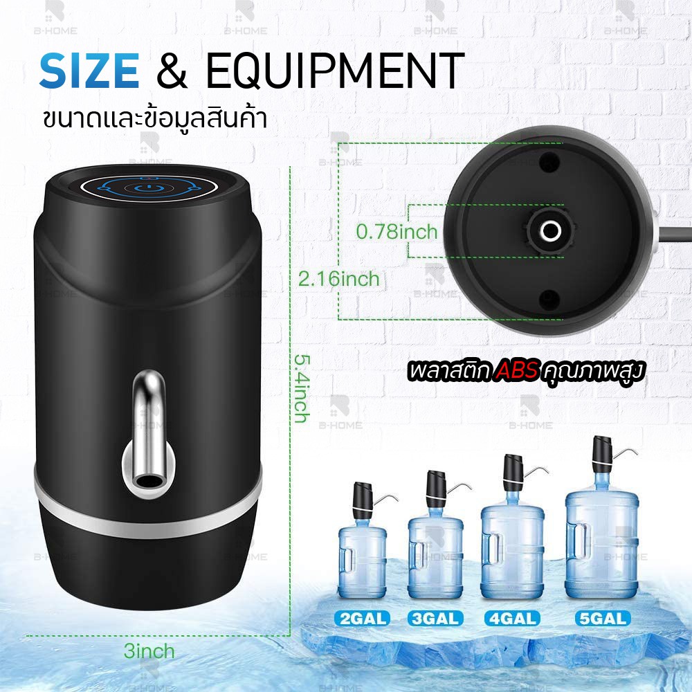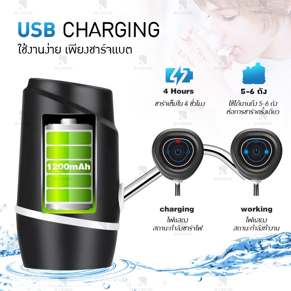 B-HOME ที่ กดน้ำดื่มไฟฟ้า เครื่องกดน้ำอัตโนมัติ แบบไร้สาย แบบชาร์จ USB ใช้กับถังน้ำ 5 แกลลอนได้