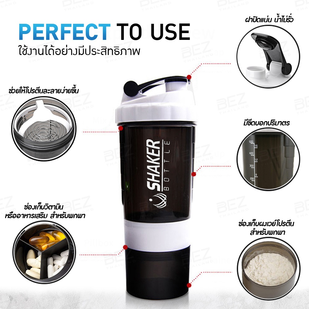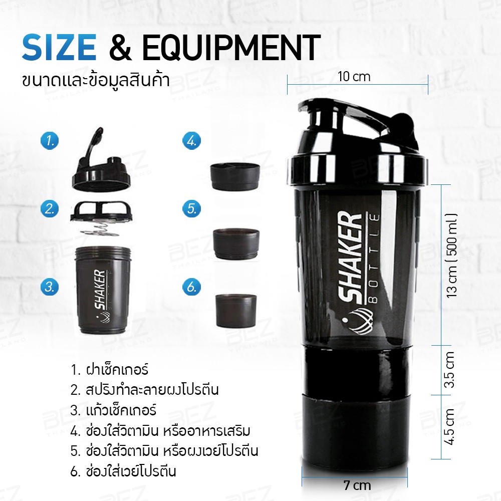BEZ แก้วเชคโปรตีน 500 ml กระบอกเชค เขย่าเวย์ โปรตีน Shaker Bottle Whey Protein