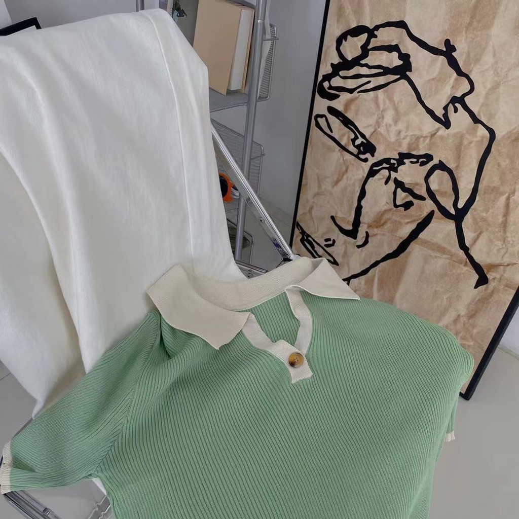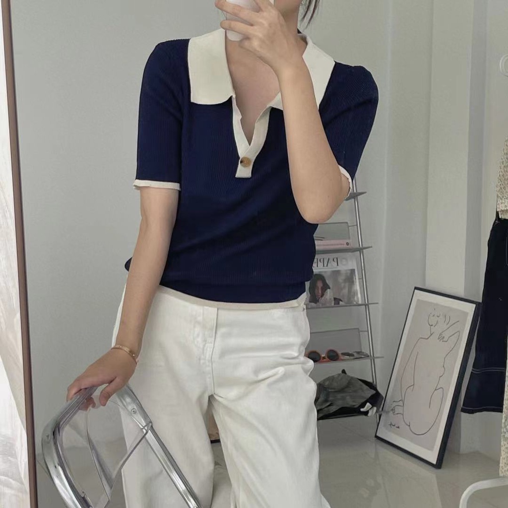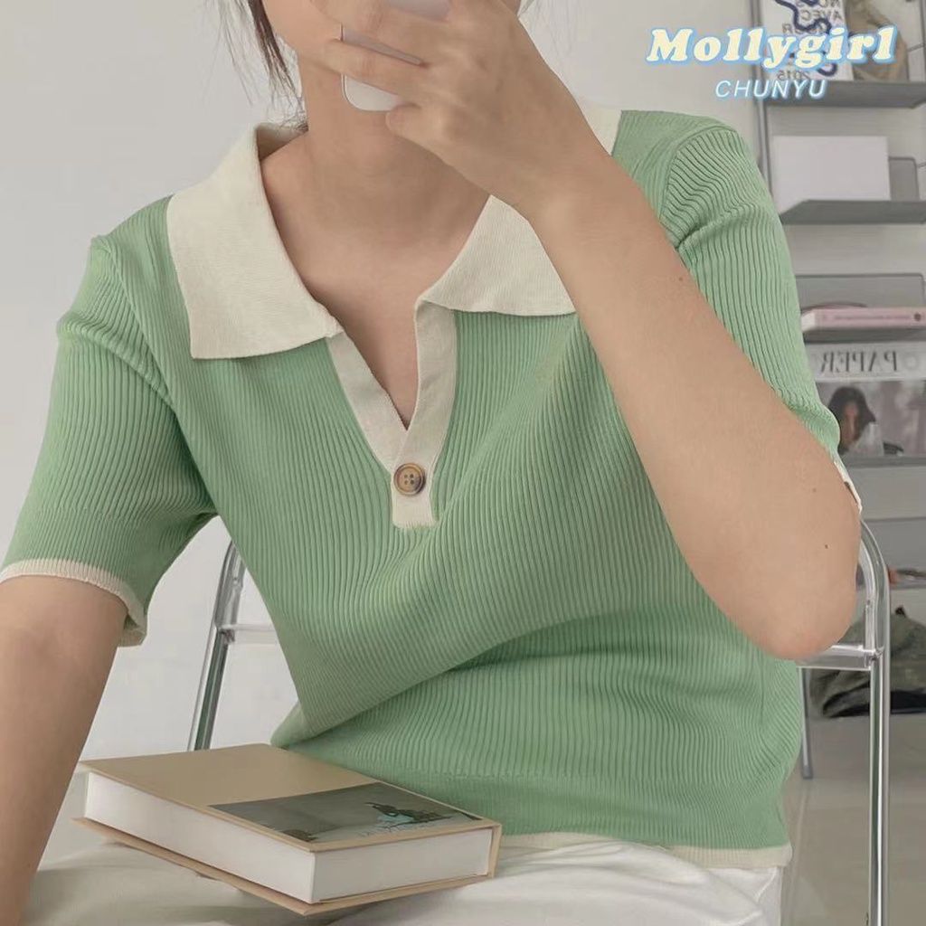 Mollygirl เสื้อคอปกตัดขอบสีทูโทน ใส่ทำงาน เรียบหรูมินิมอล