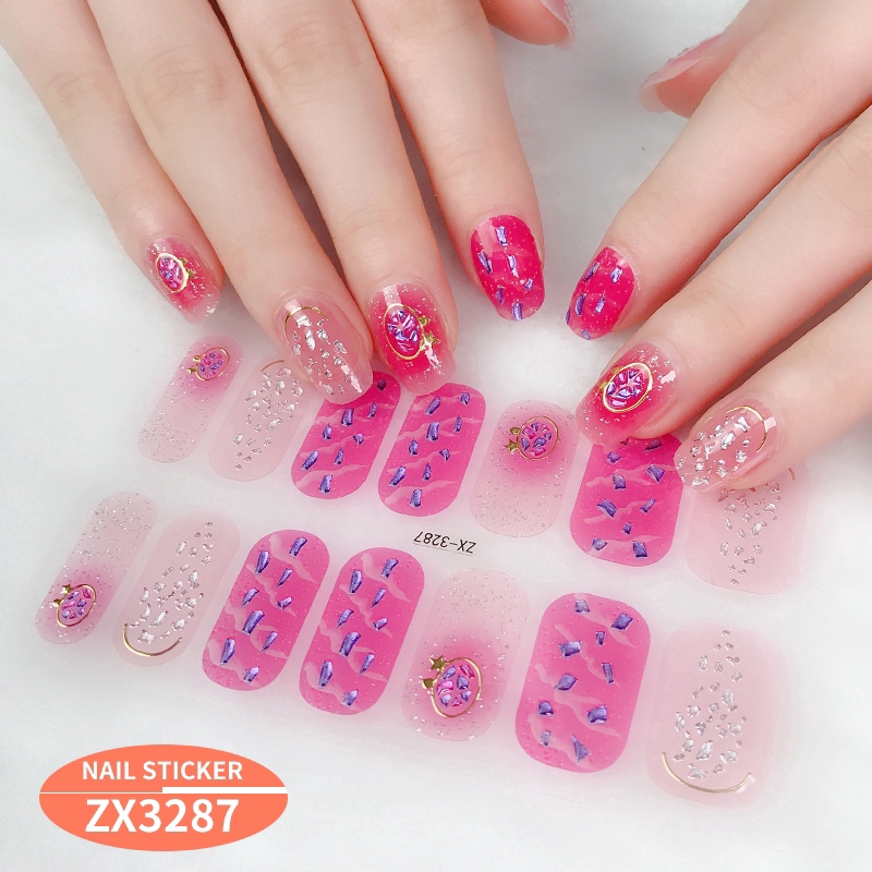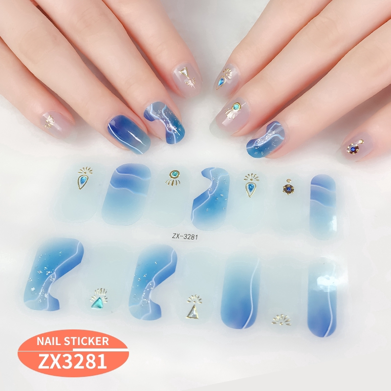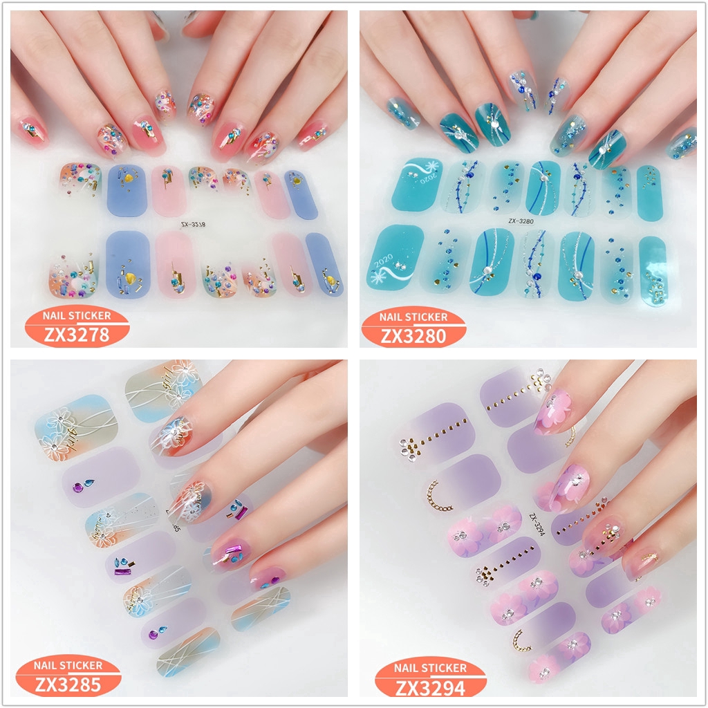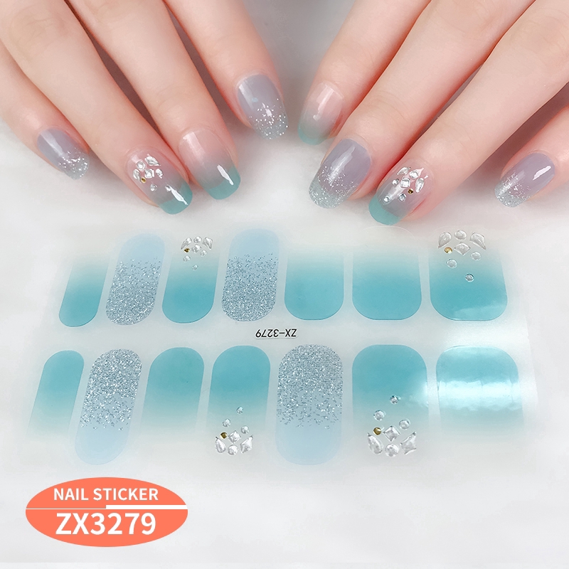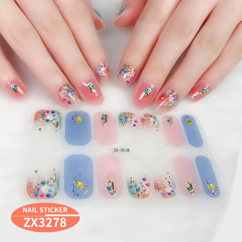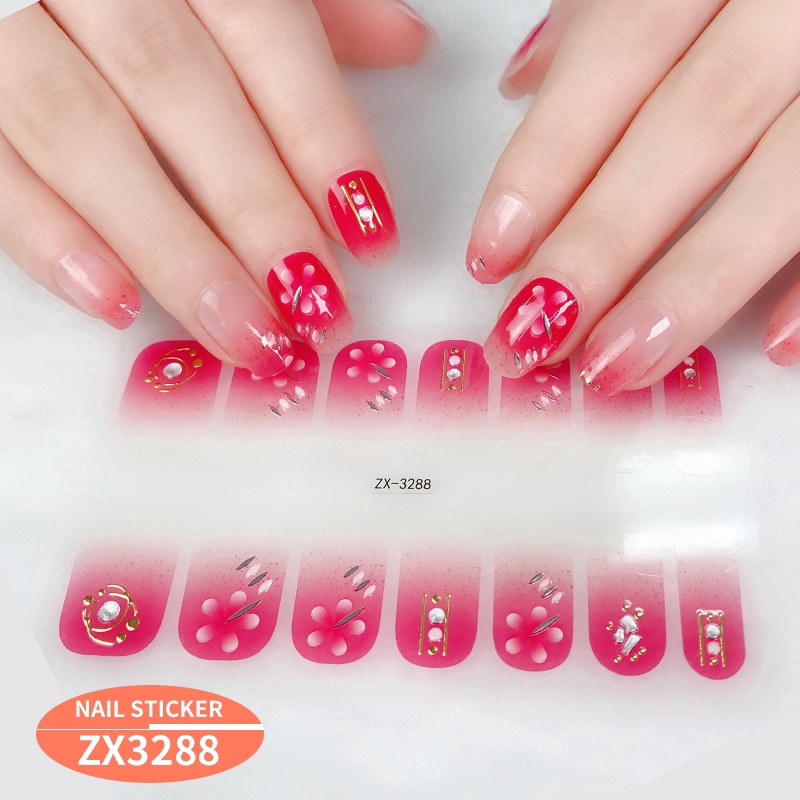 สติกเกอร์ 3D ไล่โทนสี ตกแต่งเพชรไข่มุก สำหรับติดเล็บ DIY