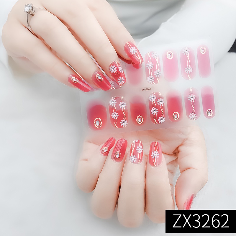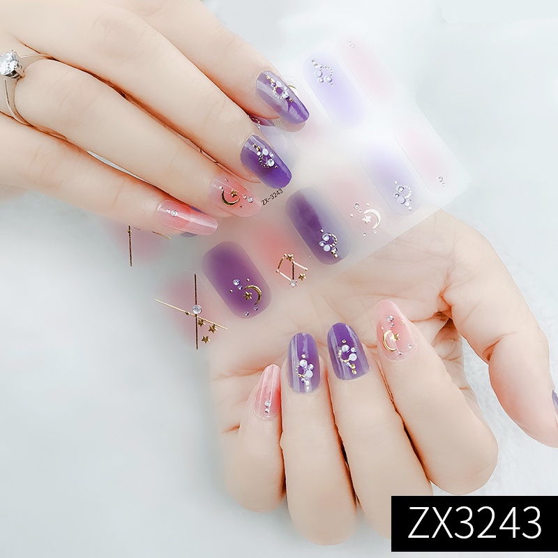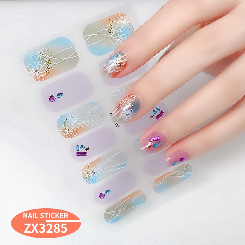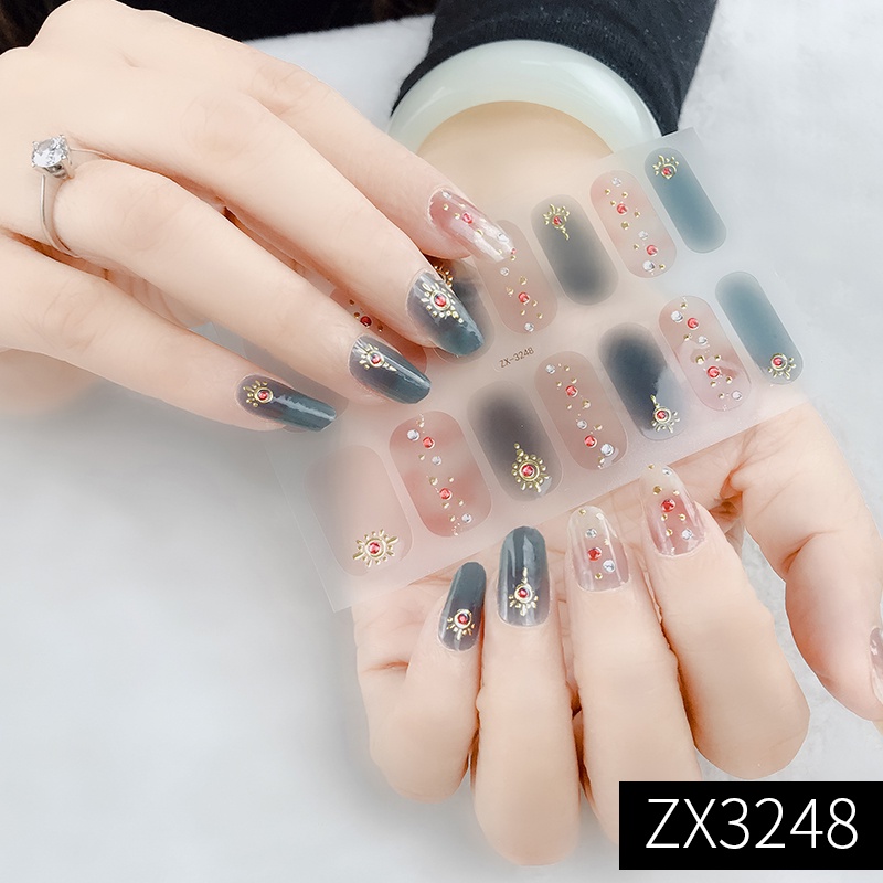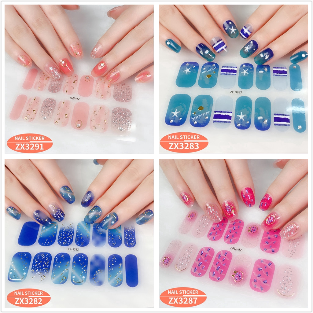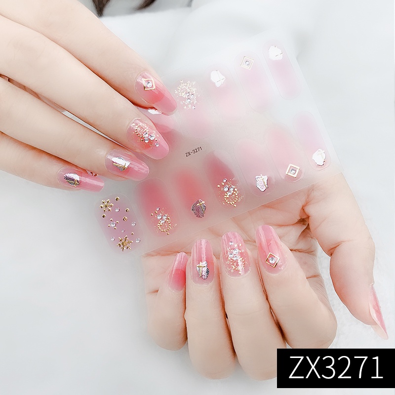 สติกเกอร์ 3D ไล่โทนสี ตกแต่งเพชรไข่มุก สำหรับติดเล็บ DIY