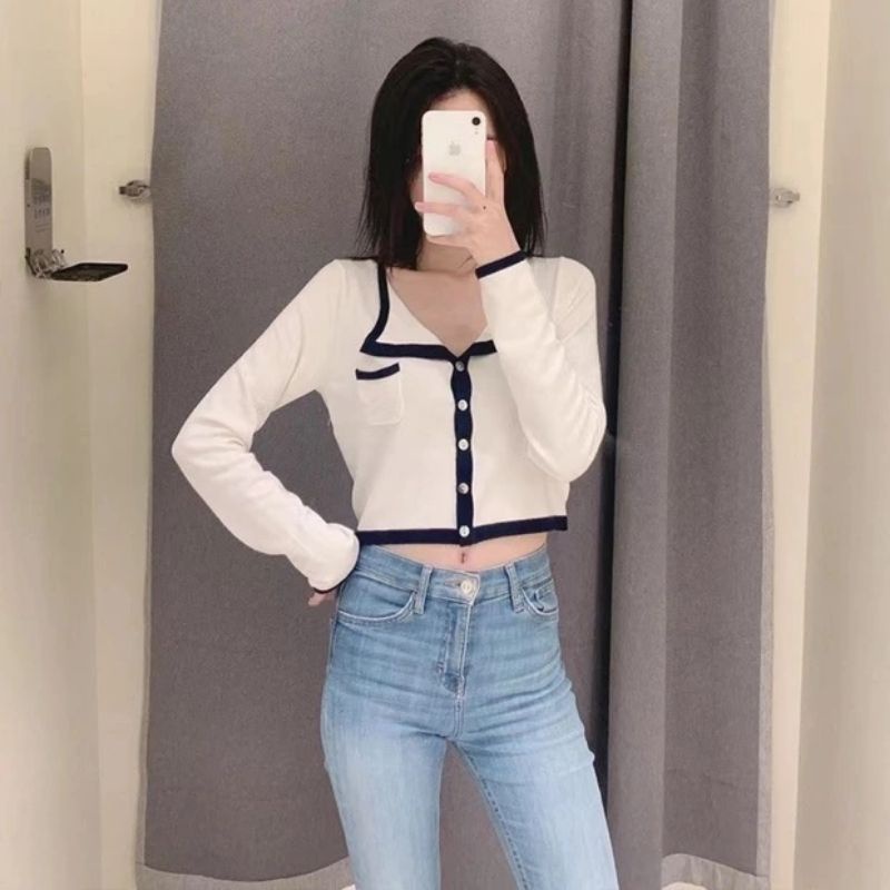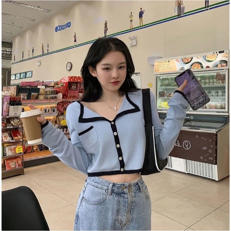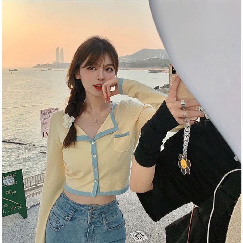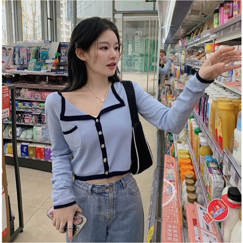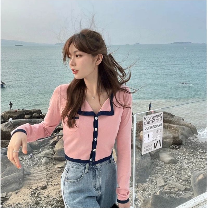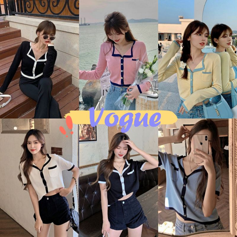 Vogue🌟พร้อมส่ง🌟เสื้อไหมพรมแขนยาว กระดุมน่ารักสีพาสเทลน่ารัก 6สี (7939-1/7939) -N