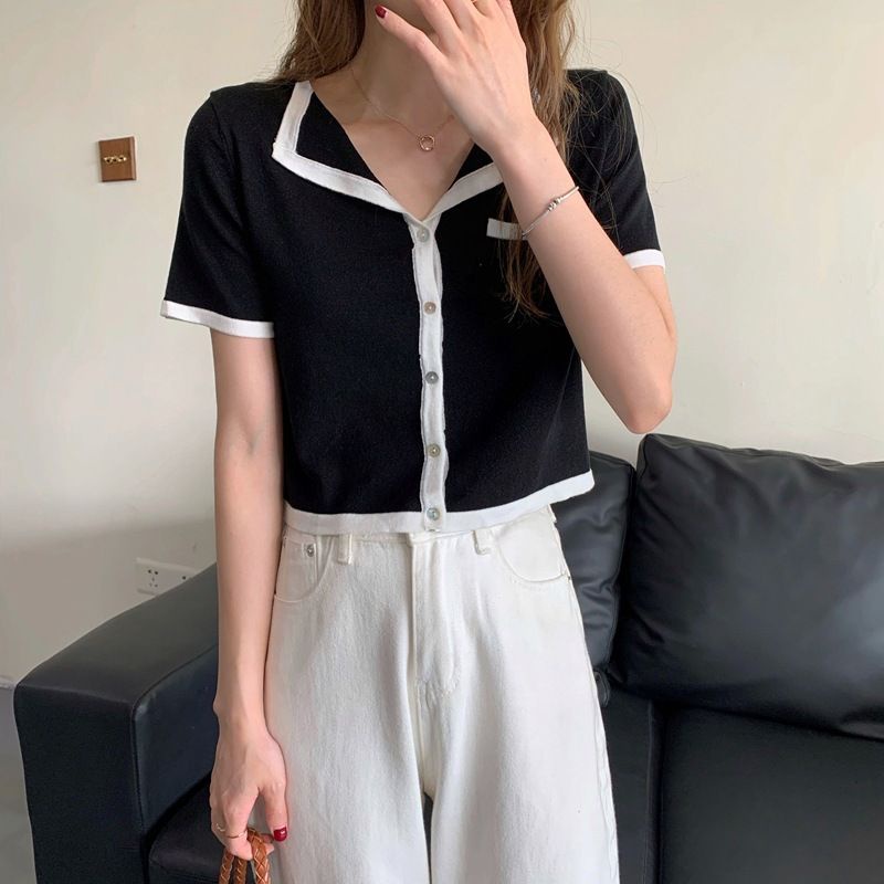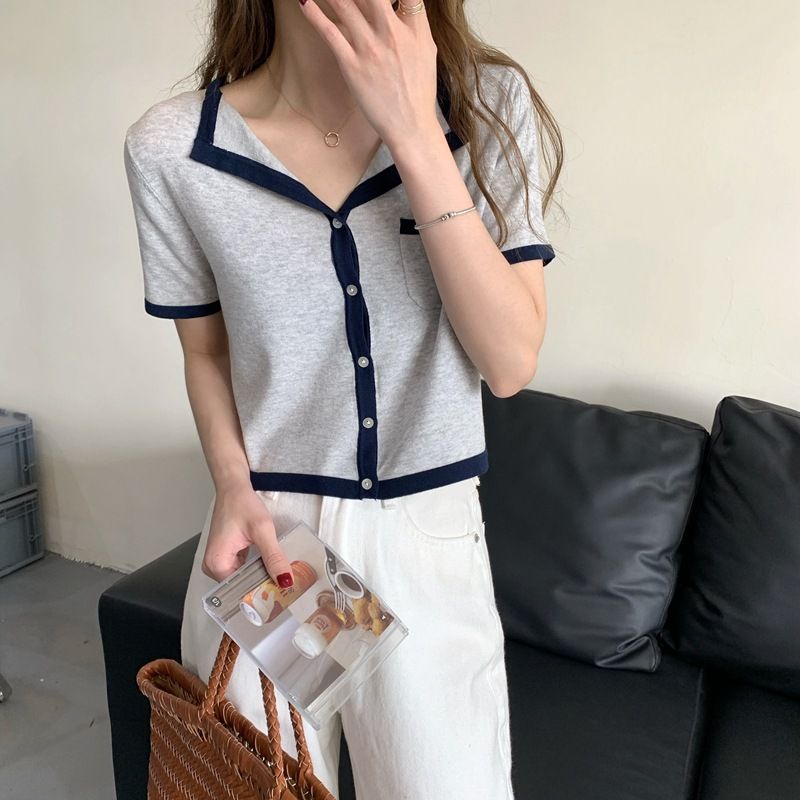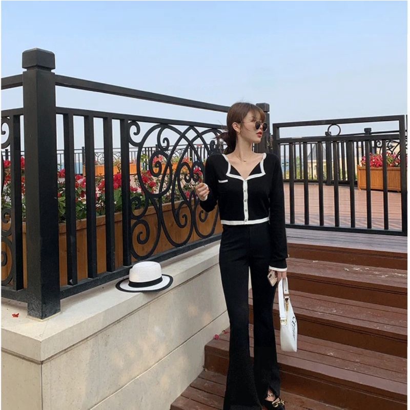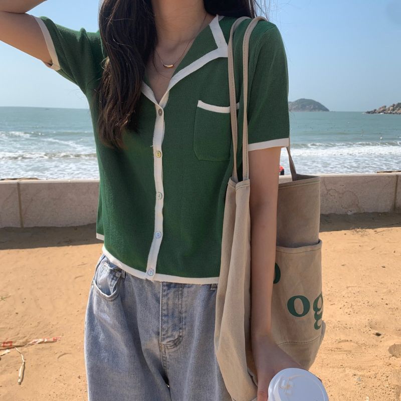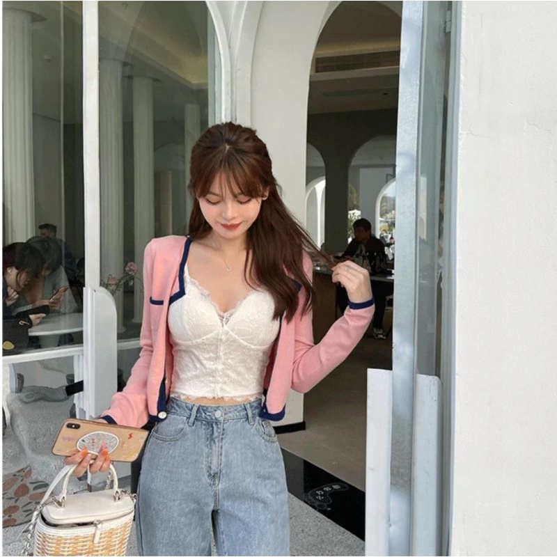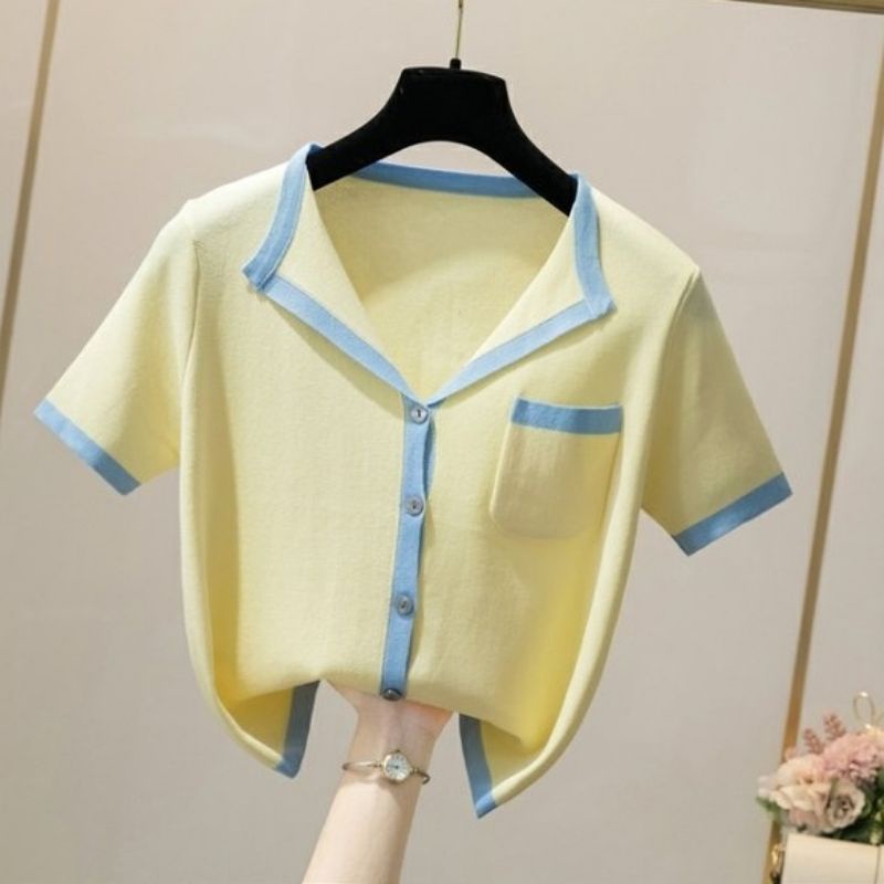 Vogue🌟พร้อมส่ง🌟เสื้อไหมพรมแขนยาว กระดุมน่ารักสีพาสเทลน่ารัก 6สี (7939-1/7939) -N