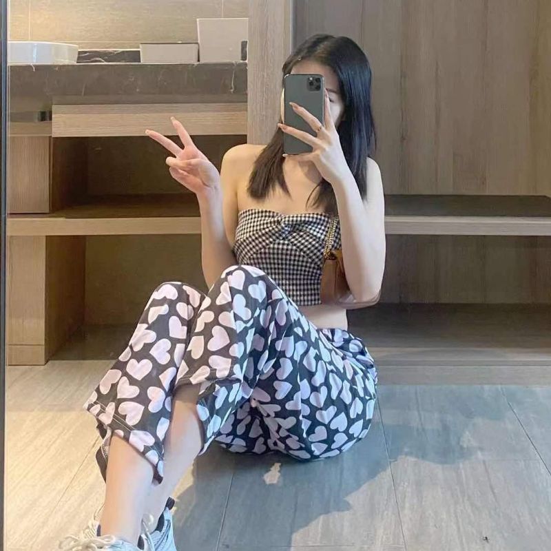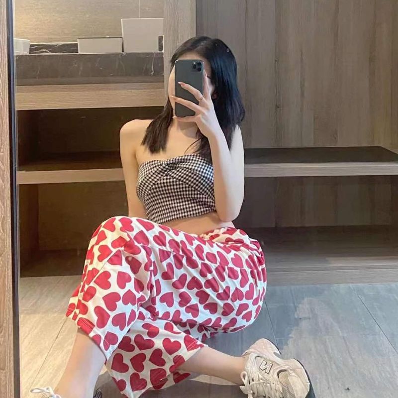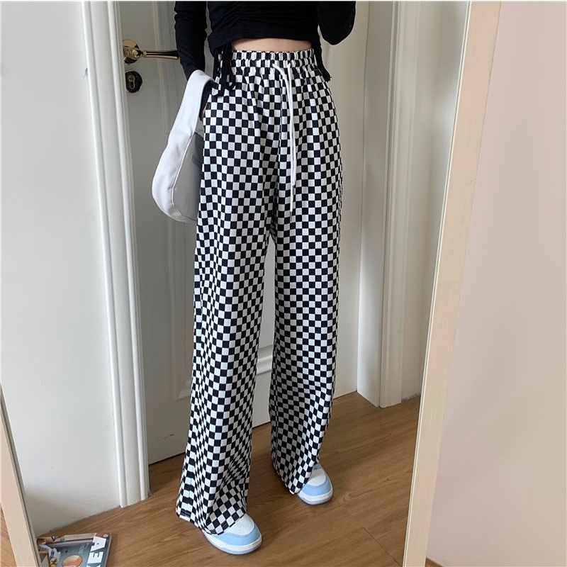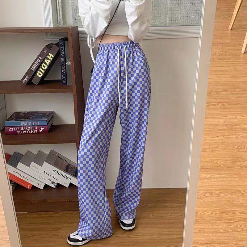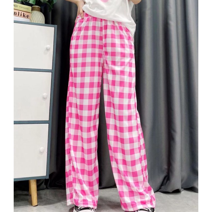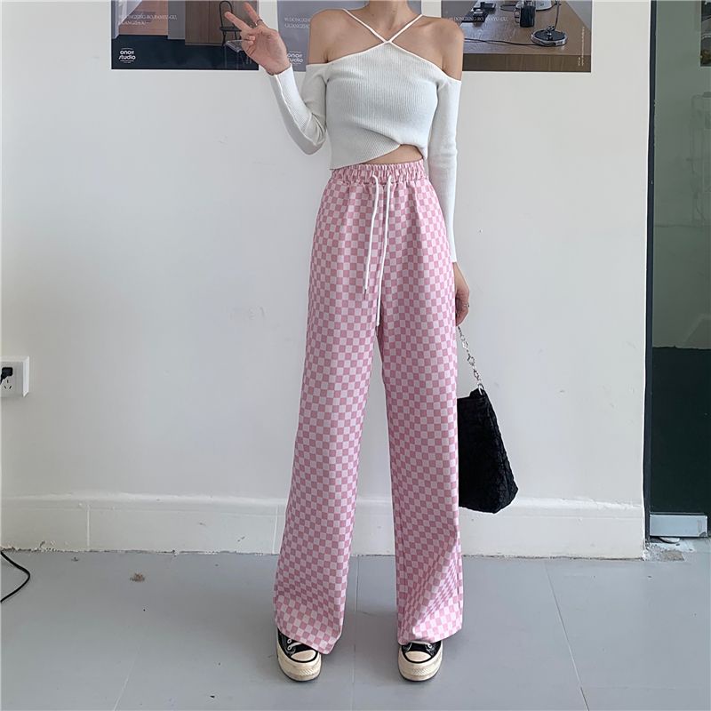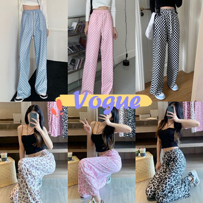 Vogue🌟พร้อมส่ง🌟กางเกงขายาวลายตาราง3สี เอวสม็อคสีพาสเทลน่ารัก (A-KU333) 01 -N