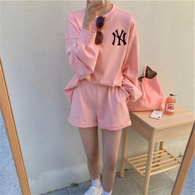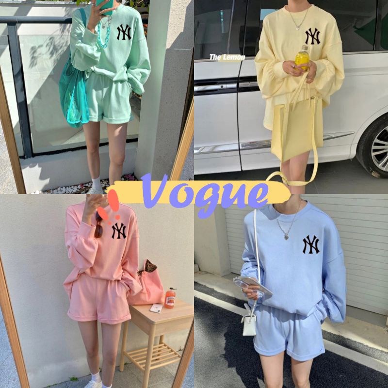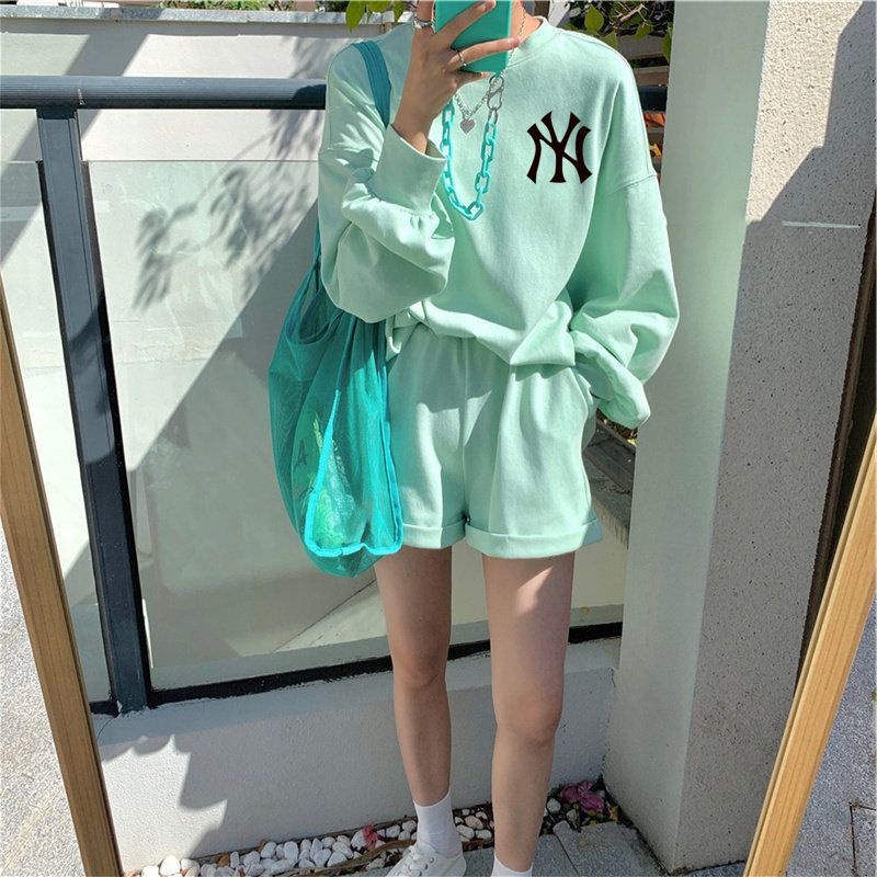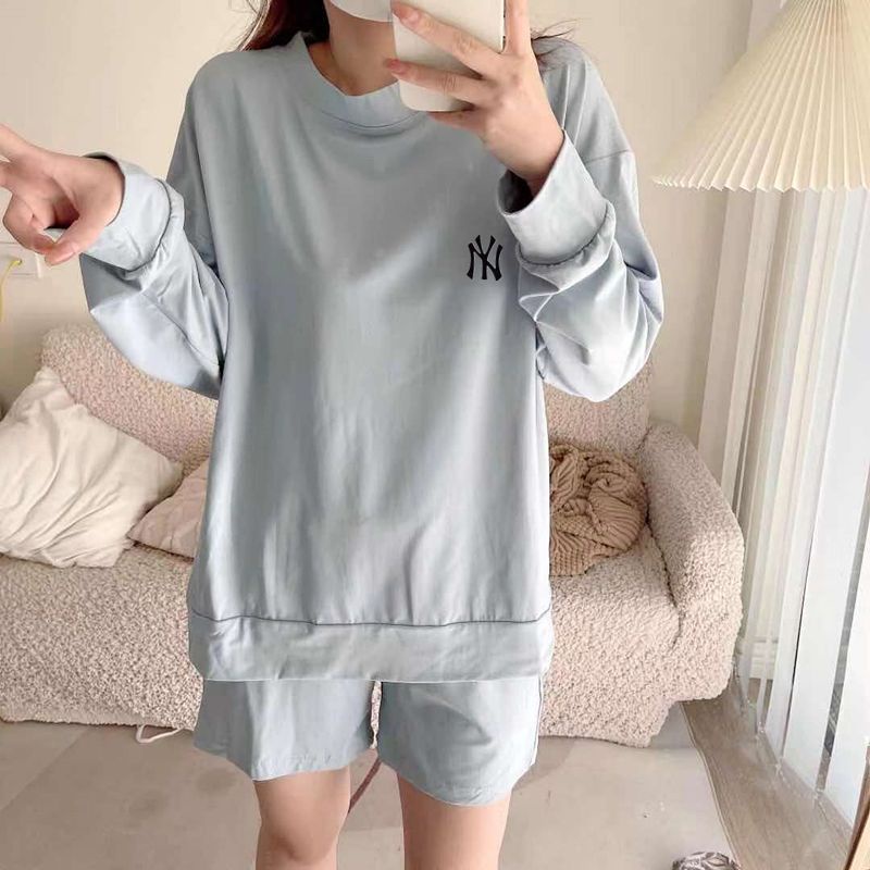 Vogue🌟พร้อมส่ง🌟เสื้อยืดแขนยาว+กางเกงขาสั้น สีพาสเทล3สีน่ารักมาก เสื้อกันหนาว (DX-NY-6061) -N 06