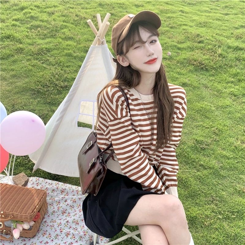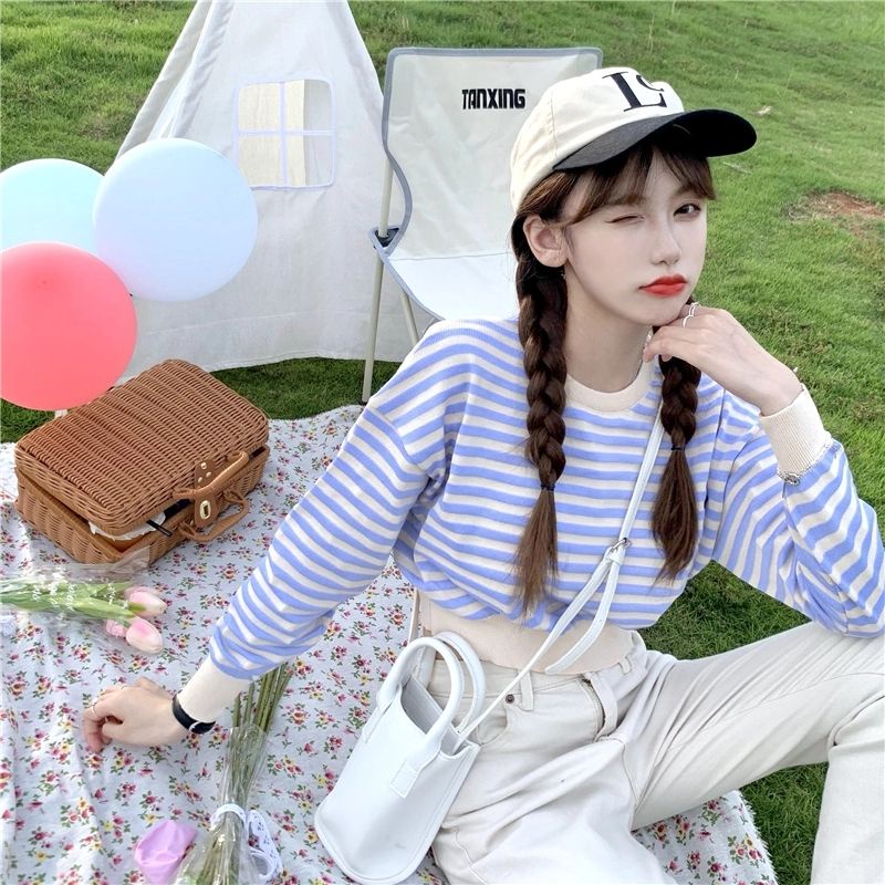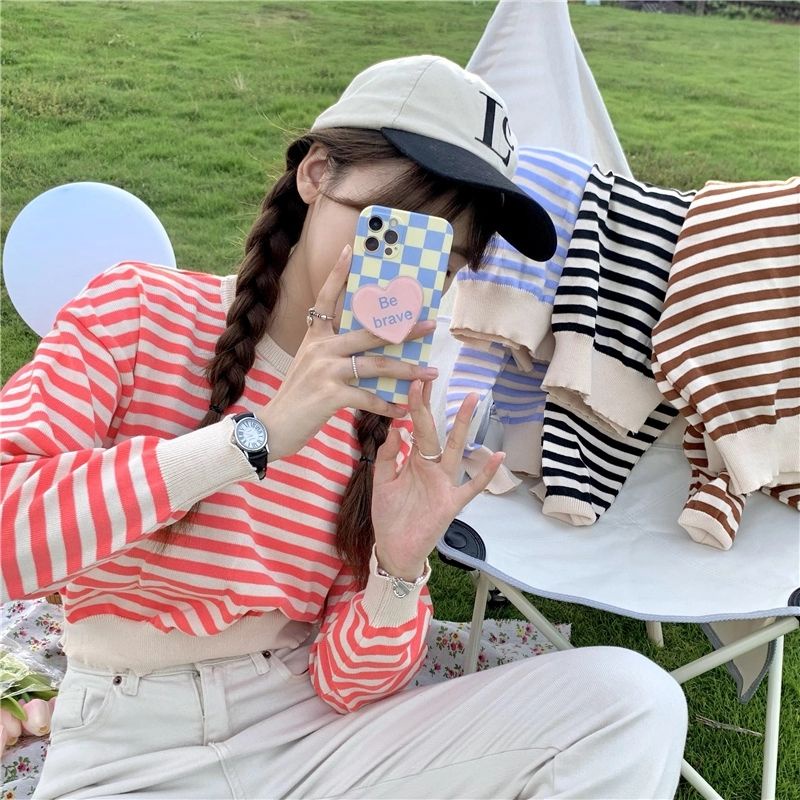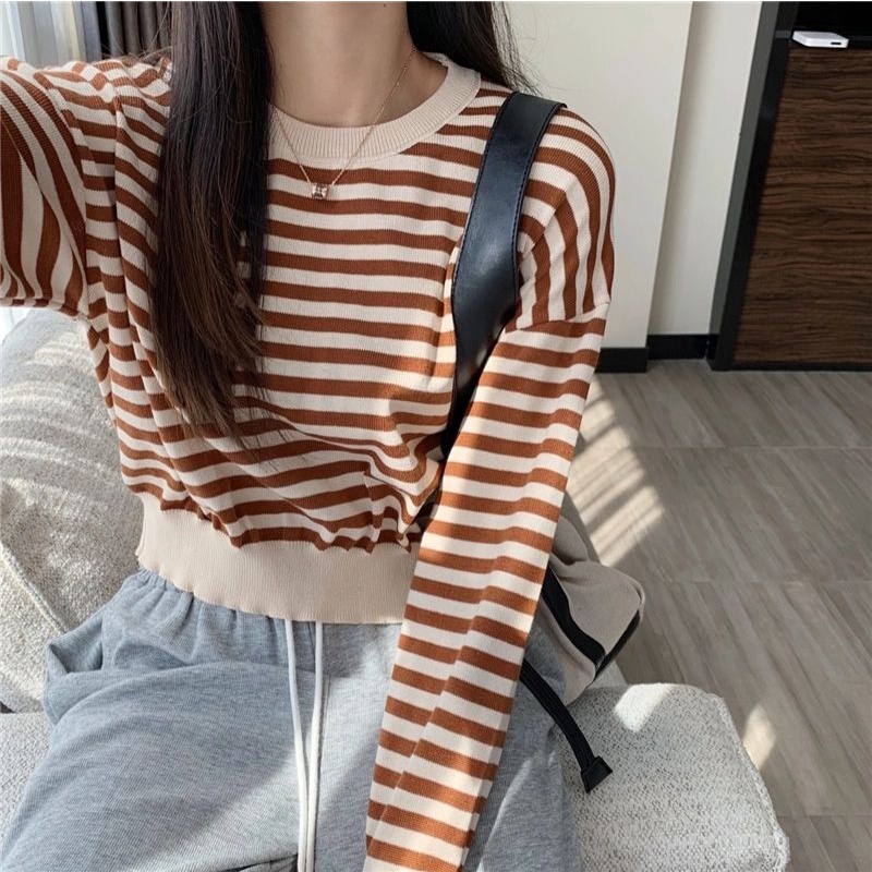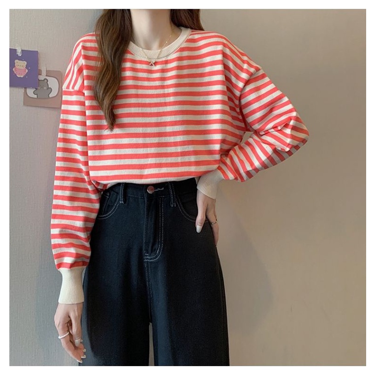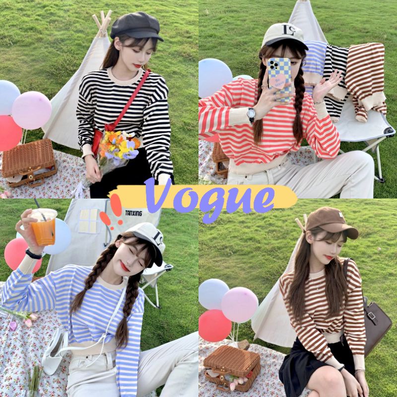 Vogue🌟พร้อมส่ง🌟เสื้อไหมพรมแขนยาว ลายทาง น่ารักสไตล์เกาหลี (9681) -C