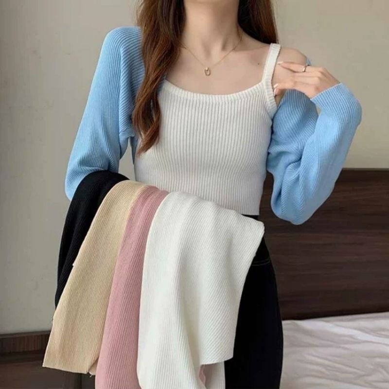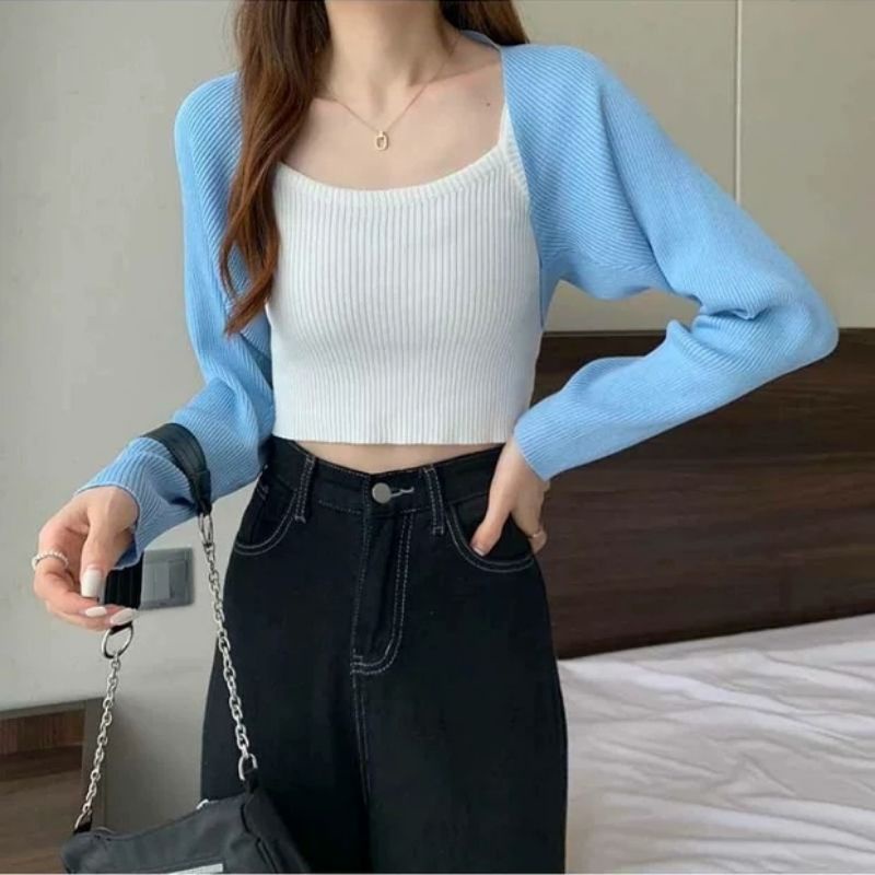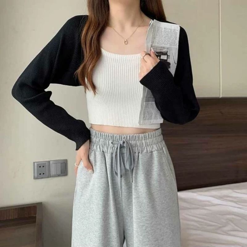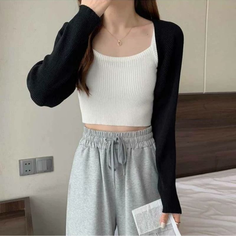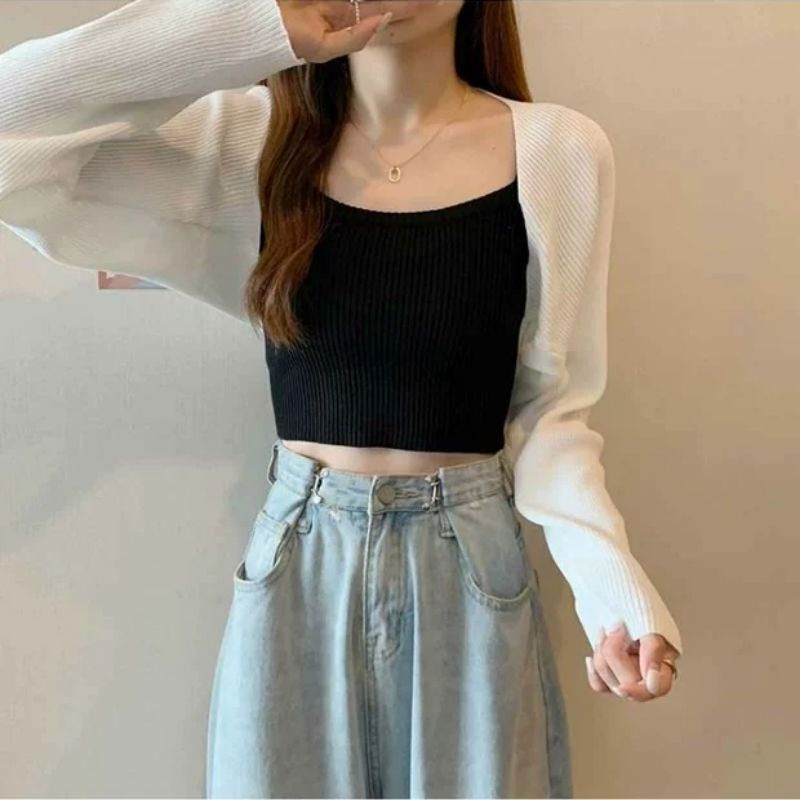 Vogue🌟พร ้อมส่ง🌟เสื้อคลุมไหมพรมแขนยาว ผ้าร่องใส่สบายมาก คลุมครึ่งตัวสไตล์เกาหลี (23150)