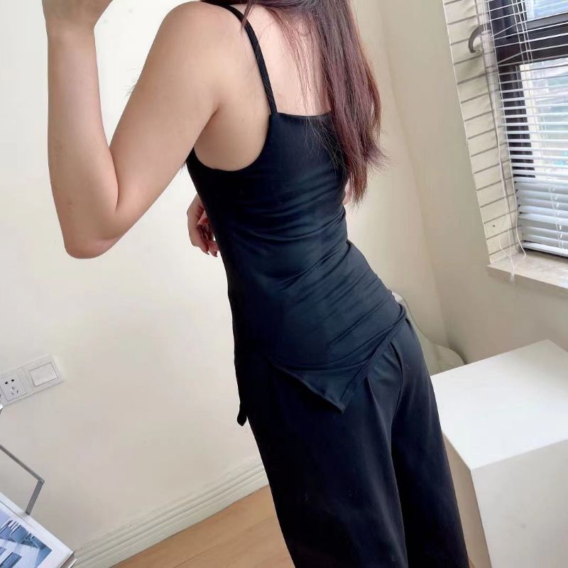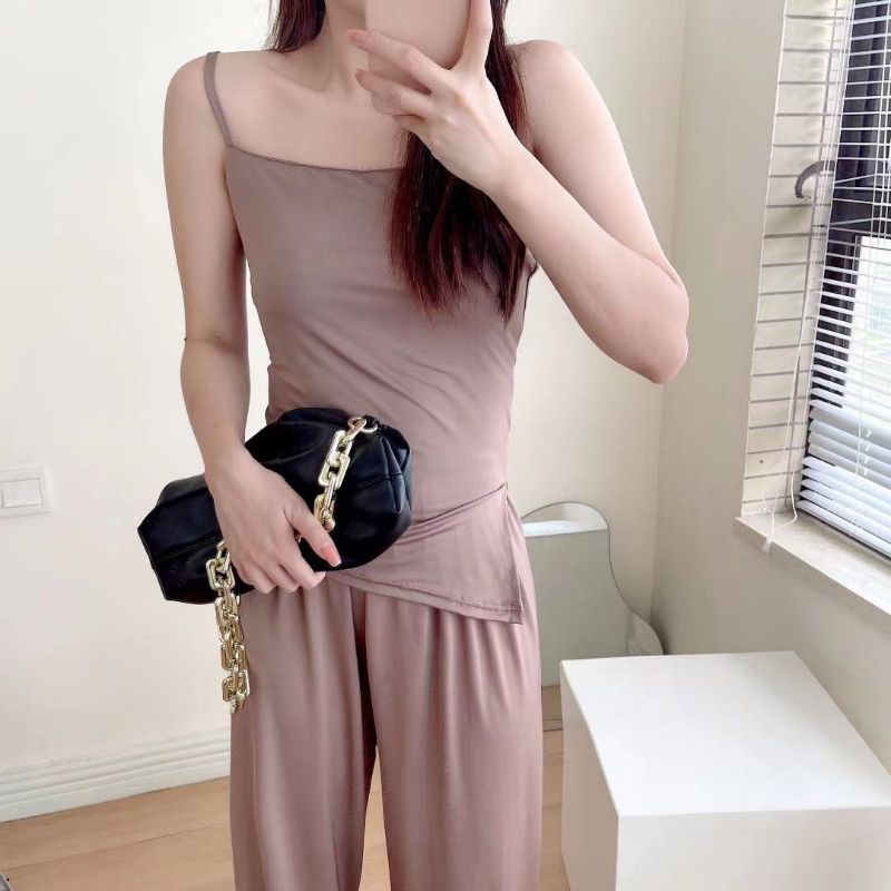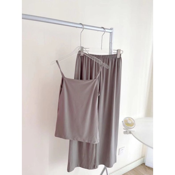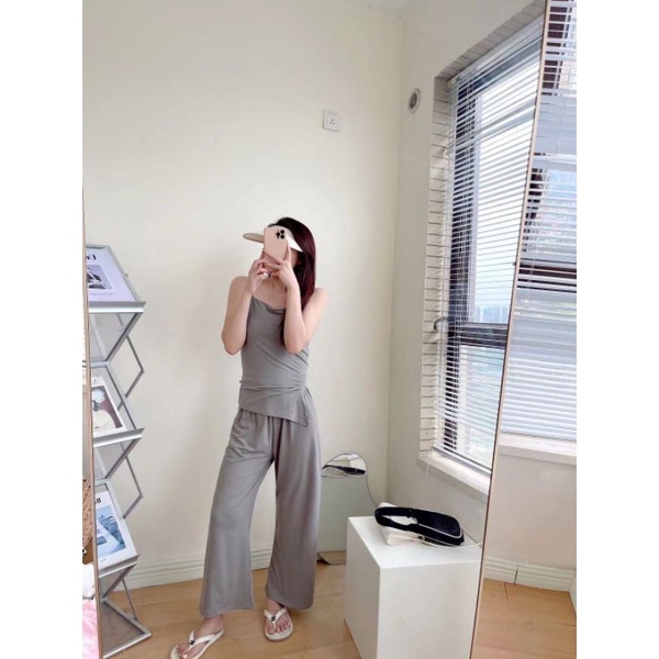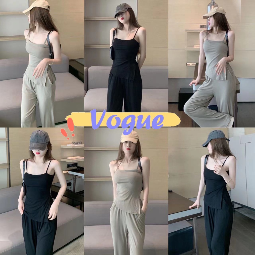 Vogue🌟พร้อมส่ง🌟เสื้อสายเดี่ยว+กางเกงขายาว ผ้าเด้งนิ่ม3สีใส่สบายมาก (DX-Set) -N 06
