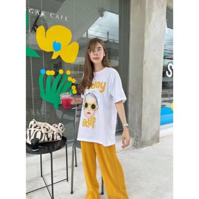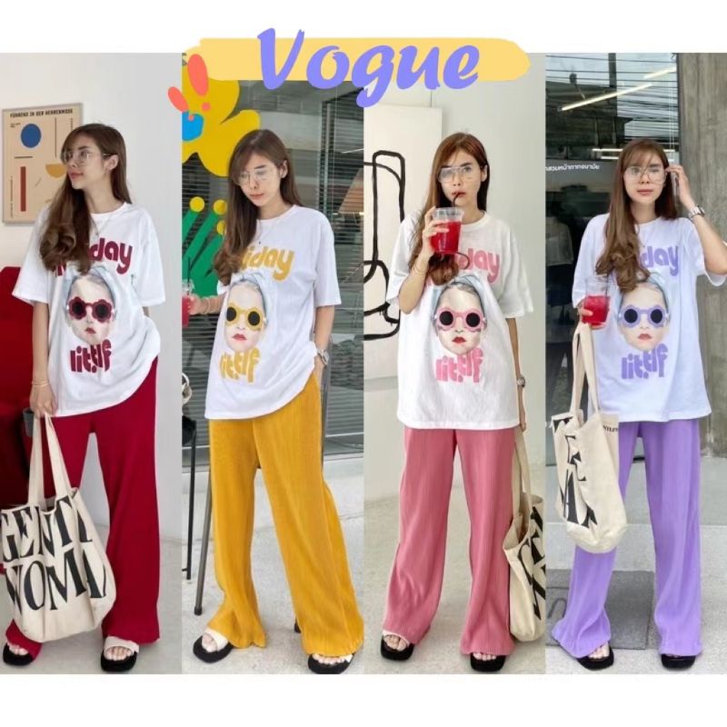 Vogue🌟พร้อมส่ง🌟 ชุดเซ็ท เสื้อยืดแขนสั้น+กางเกงขายาว ผ้านิ่มลายน่ารักมาก (DX-9554) 10