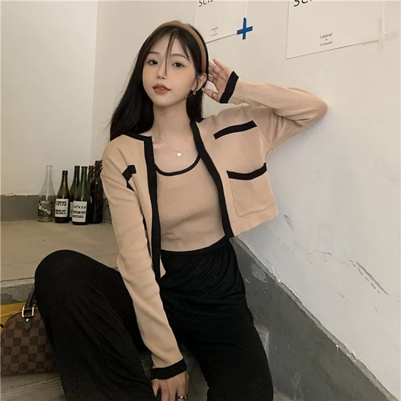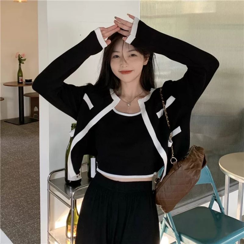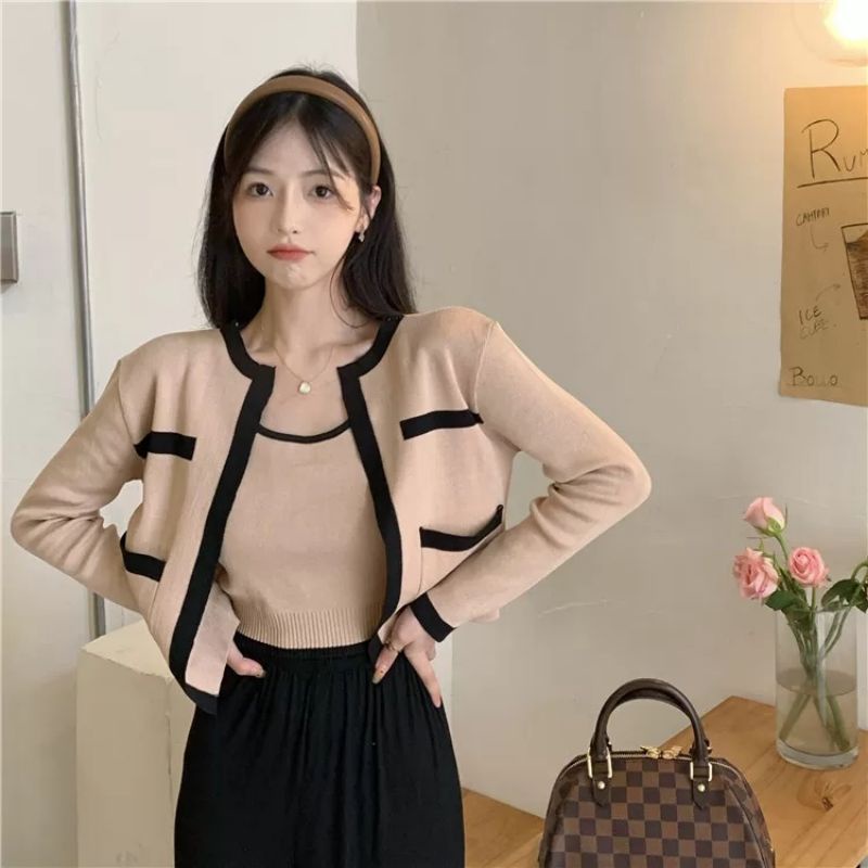 Vogue🌟พร้อมส่ง🌟เซ็ท เสื้อกล้าม+เสื้อคลุมไหมพรม ผ้านิ่มใส่สบายมากมี3สีน่ารัก (3030+3031-C/3031+3030-1)