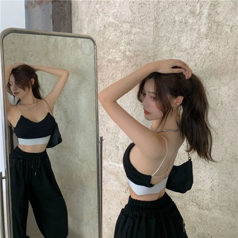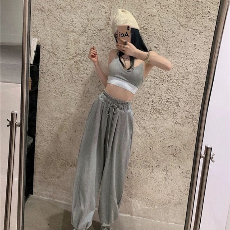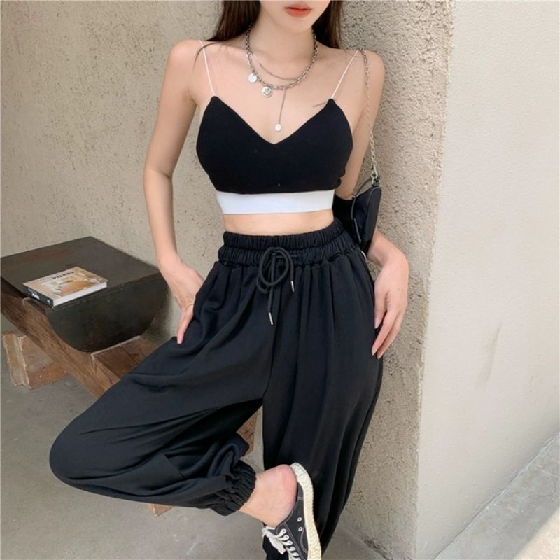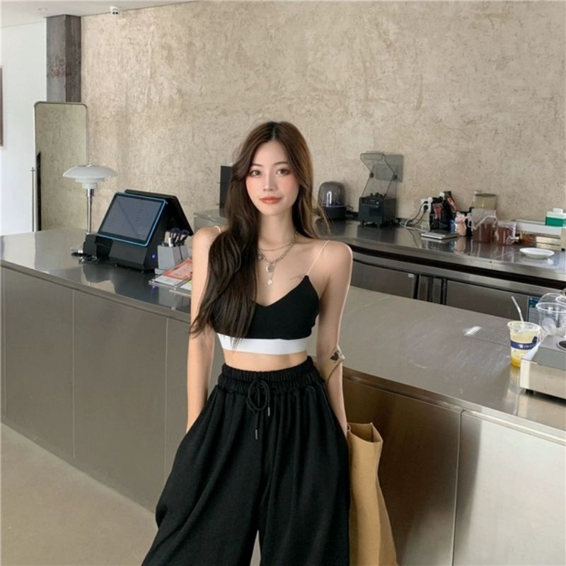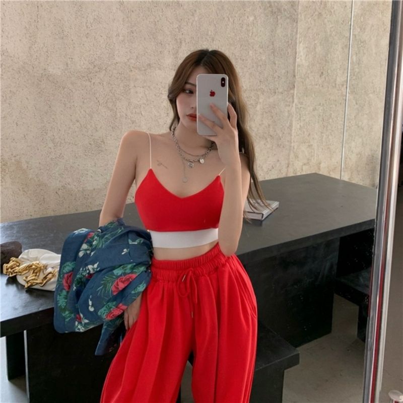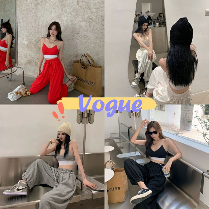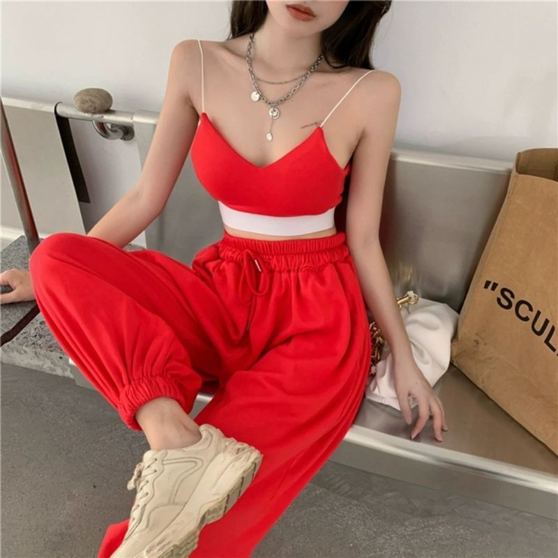 Vogue🌟พร้อมส่ง🌟ชุดเซ็ท เสื้อสายเดี่ยว+กางเกงขายาว ขาจั้ม มี2สี ทะเลต้องมีแล้ว (DX-Set-BlackRed) 07