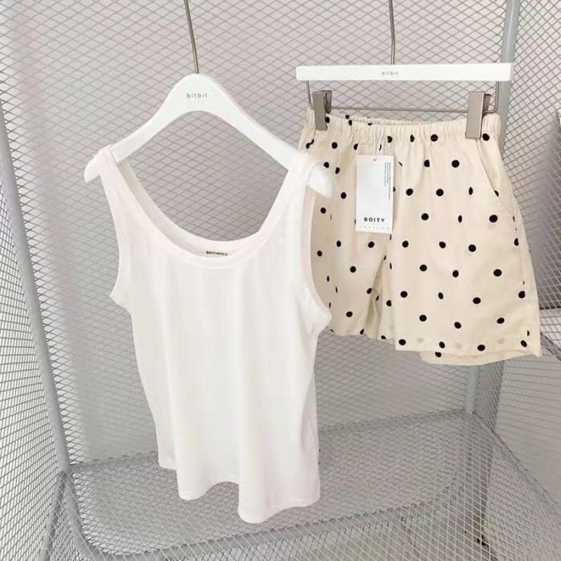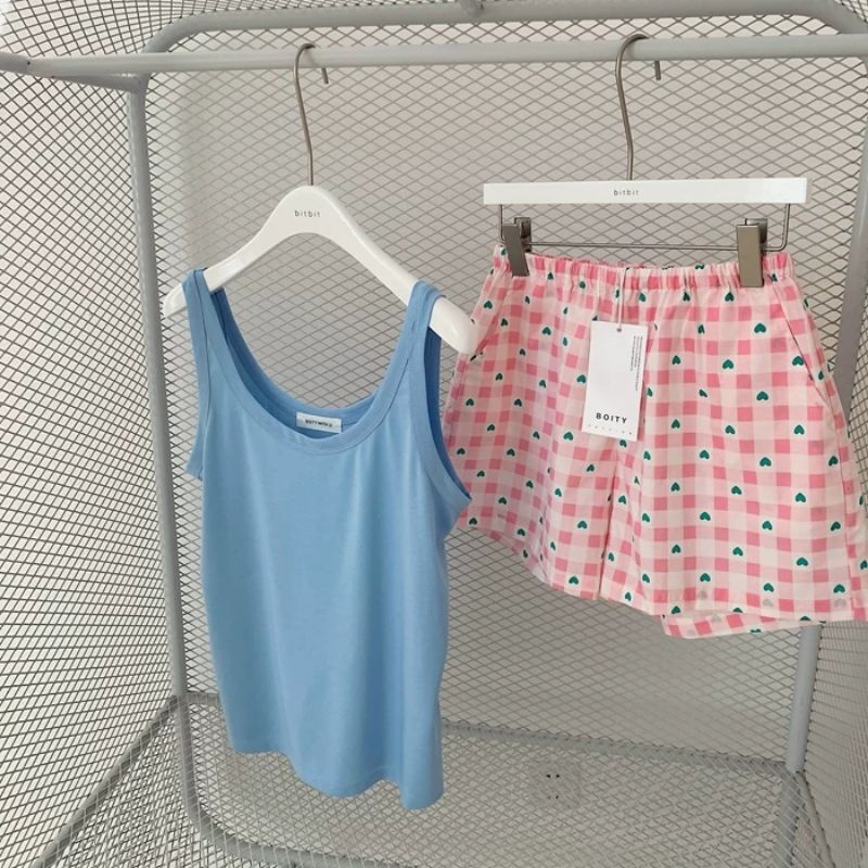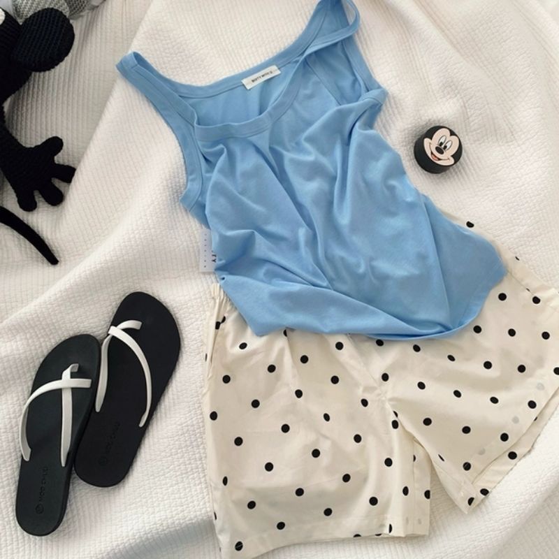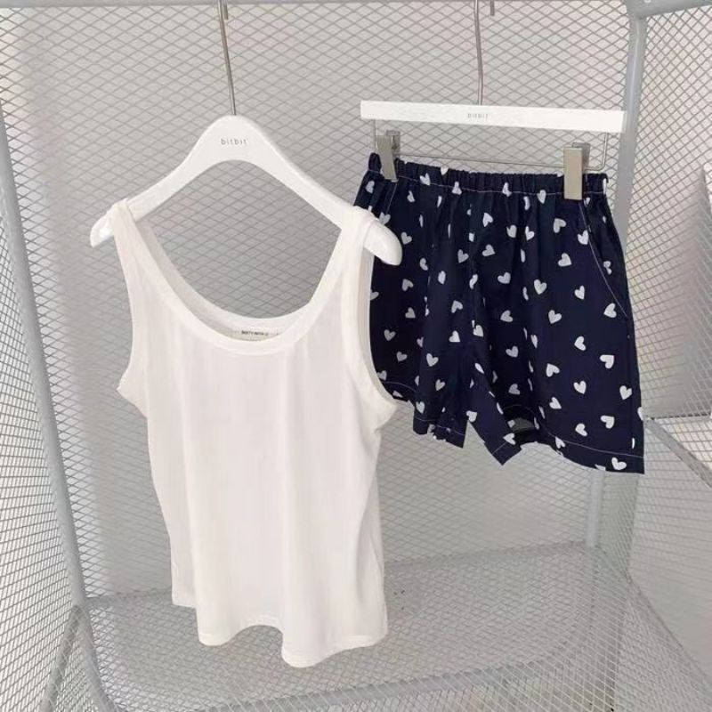 Vogue🌟พร้อมส่ง🌟 ชุดนอน เสื้อกล้าม+กางเกงขาสั้น ผ้านิ่มใส่สบาย ลายน่ารัก (DX-SetSY-07) -N
