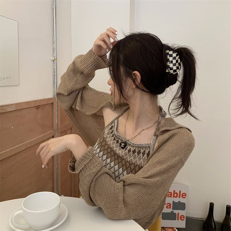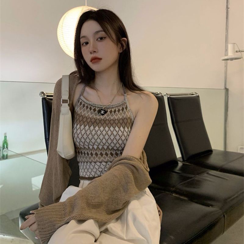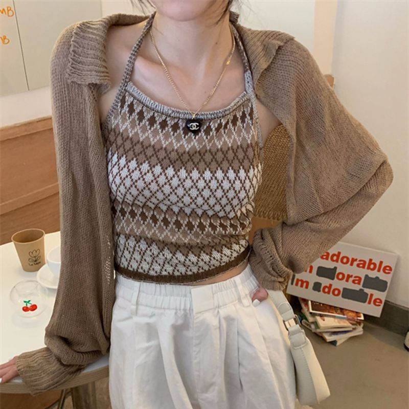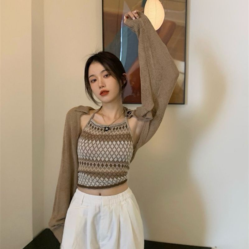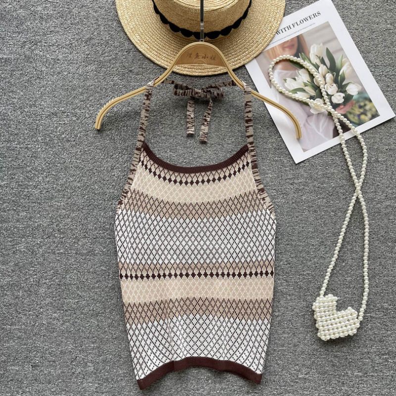 Vogue🌟พร้อมส่ง🌟เสื้อไหมพรมคล้องคอ ลายโบฮีเมียนส์ผ้านิ่มใส่สบาย (54105) -N