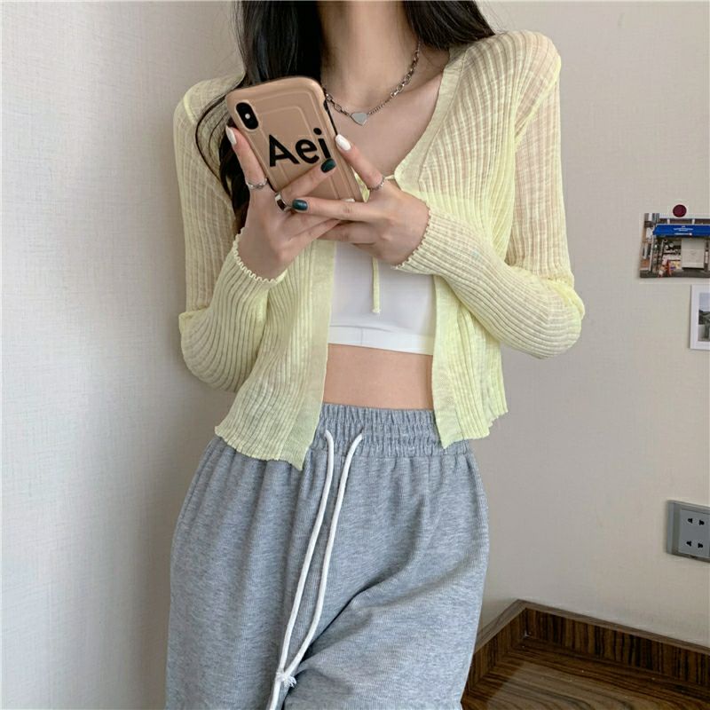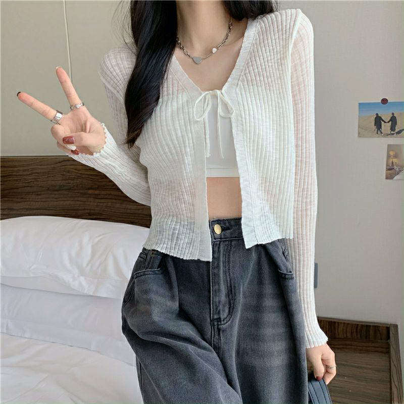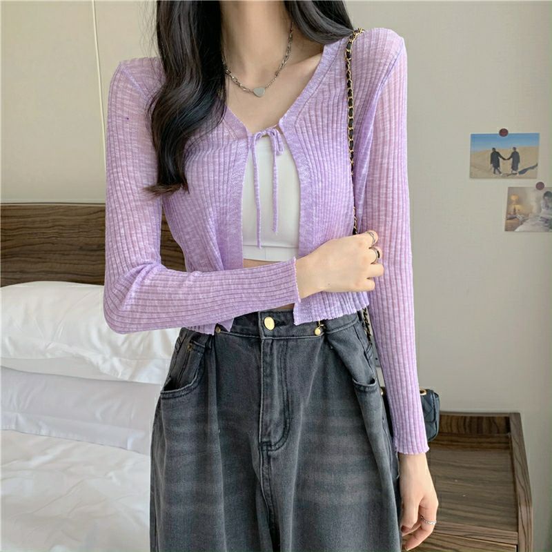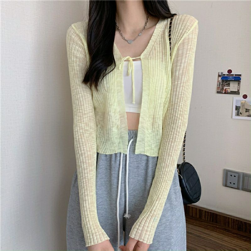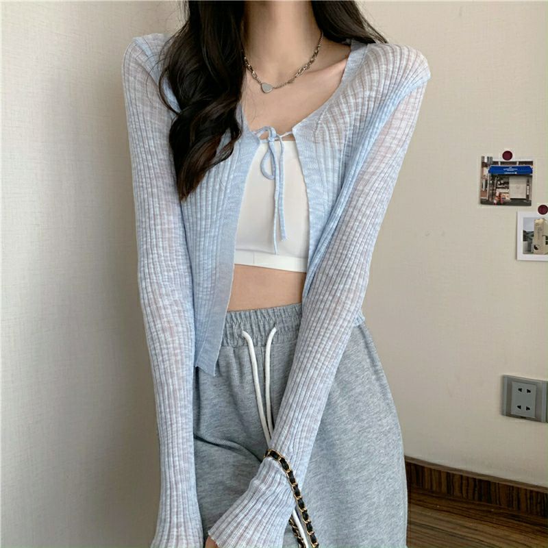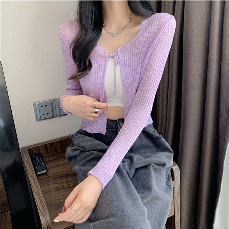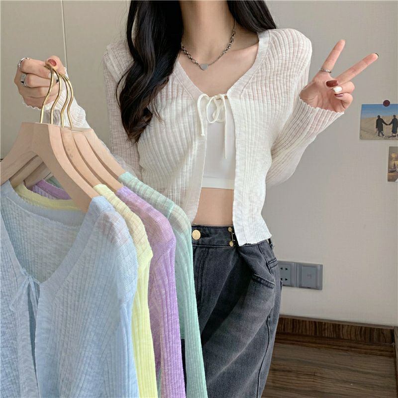Vogue🌟พร้อมส่ง🌟 เสื้อคลุมไหมพรม ผ้าร่องซีทรูสุดเซ็กซี่ สีน่ารักๆพาสเทลคิ้วๆ (68005) -N