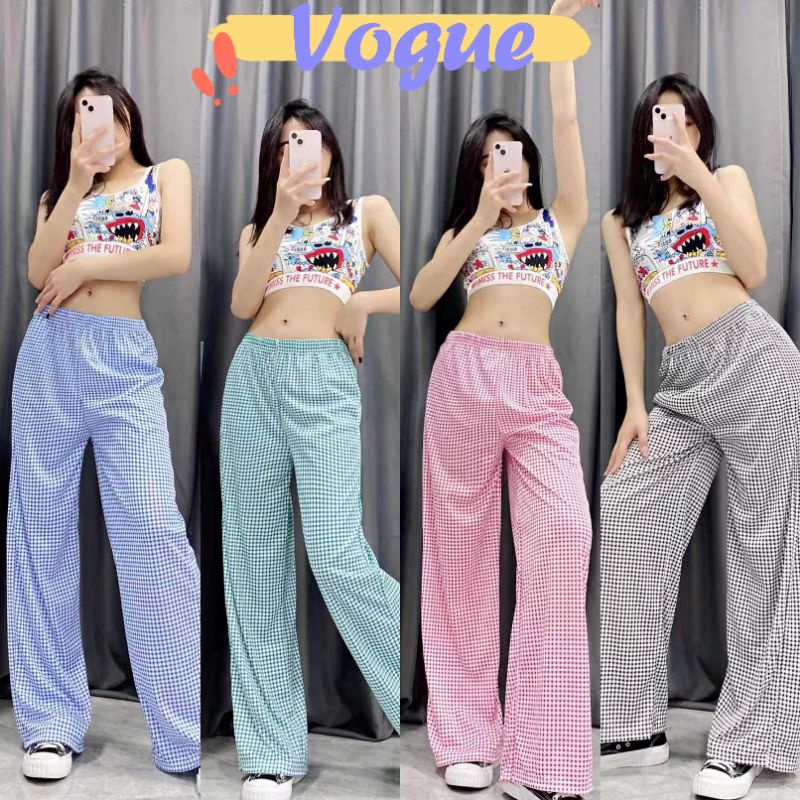Vogue🌟พร้อมส่ง🌟 กางเกงขายาว เอาสม็อค ลายตารางใส่สบายมากน่ารัก (KU-9637)