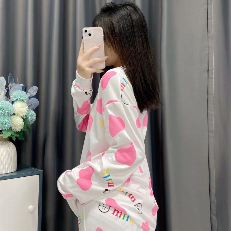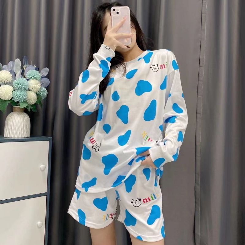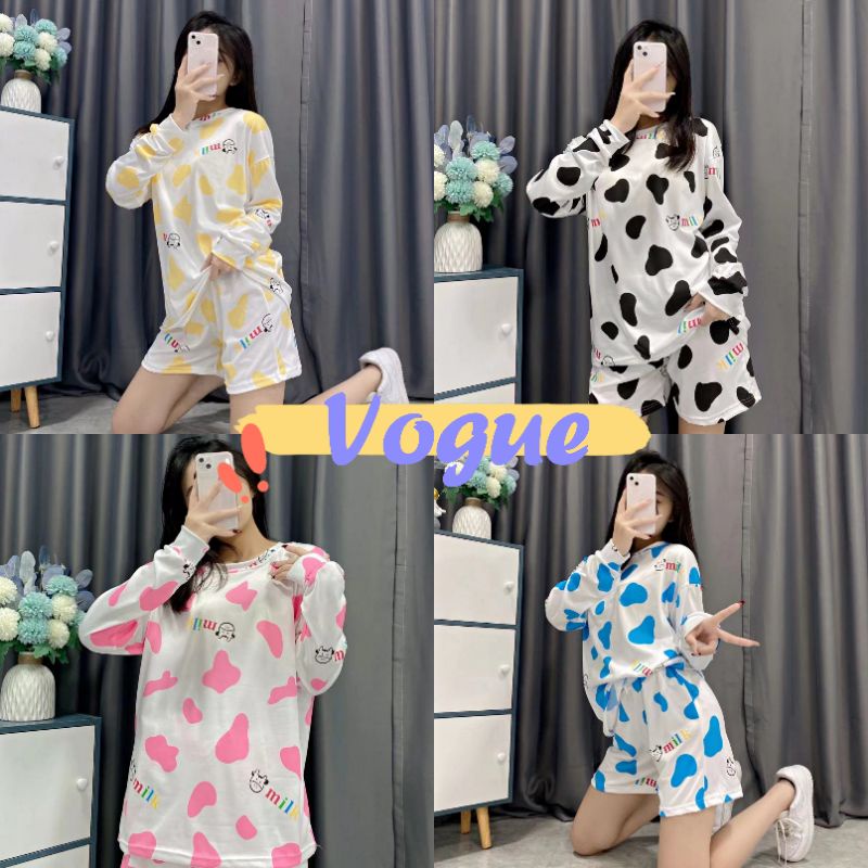 Vogue🌟พร้อมส่ง🌟 ชุดเซ็ท เสื้อแขนยาว+กางเกงขาสั้น ลายน้องวัวน่ารักมากมี4สี (DX-6318) 06 -N
