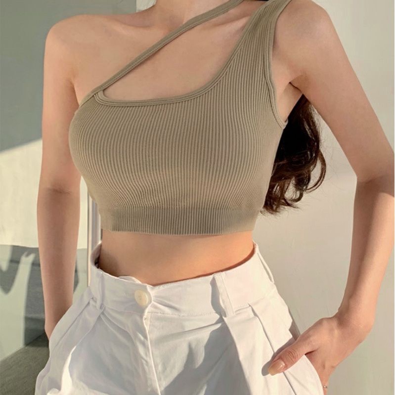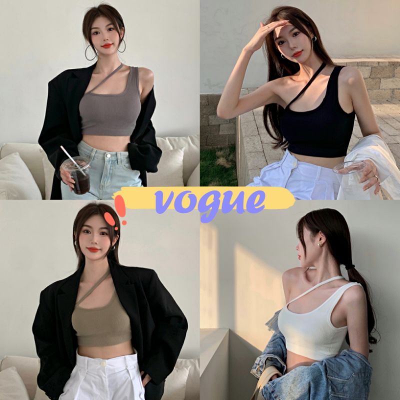 Vogue🌟พร้อมส่ง🌟 สื้อสายกล้ามไหมพรม มีฟองน้ำ ดีเทลผ้าร่องใส่สบายน่ารัก (FY402) -H-N