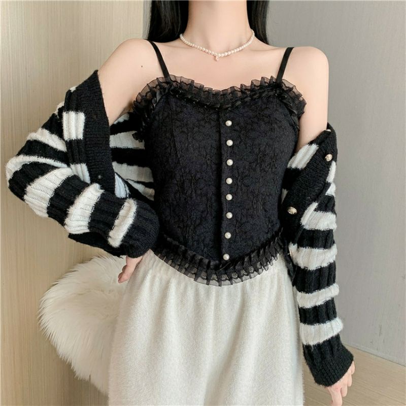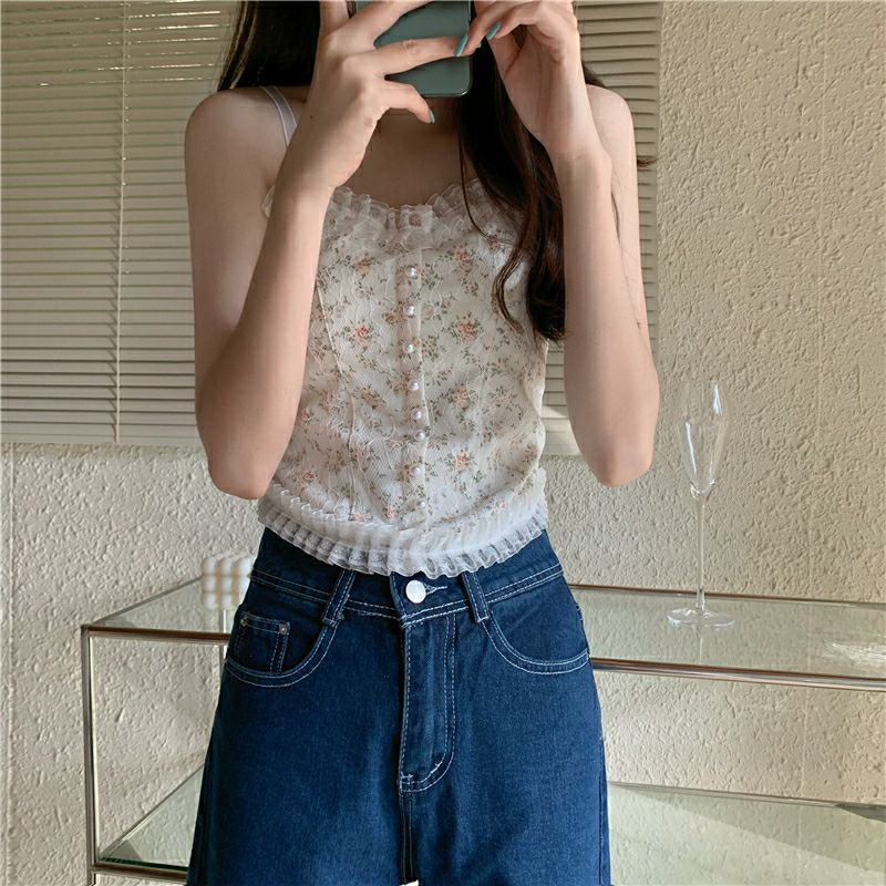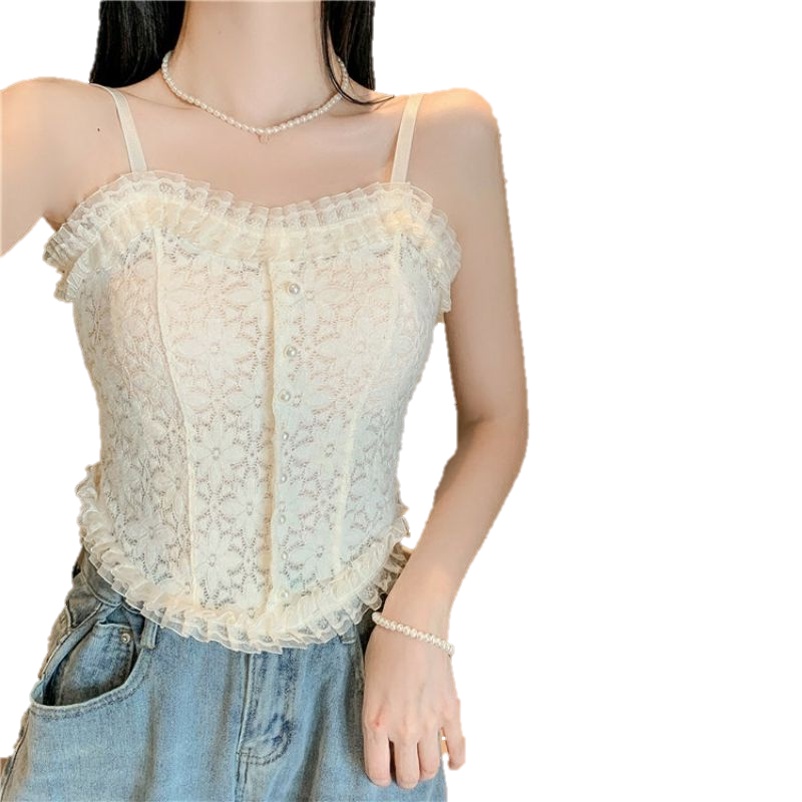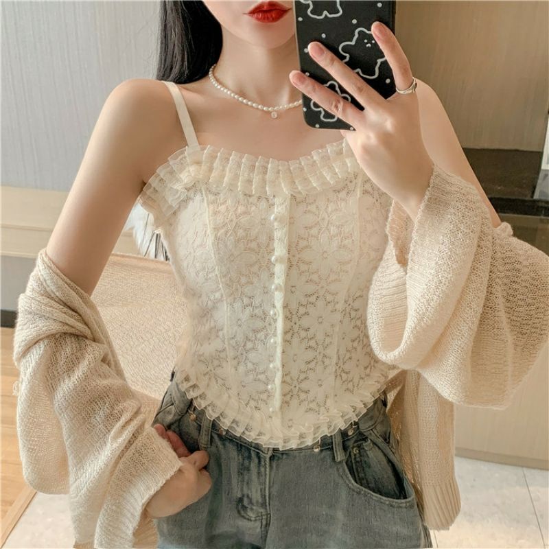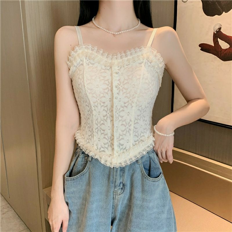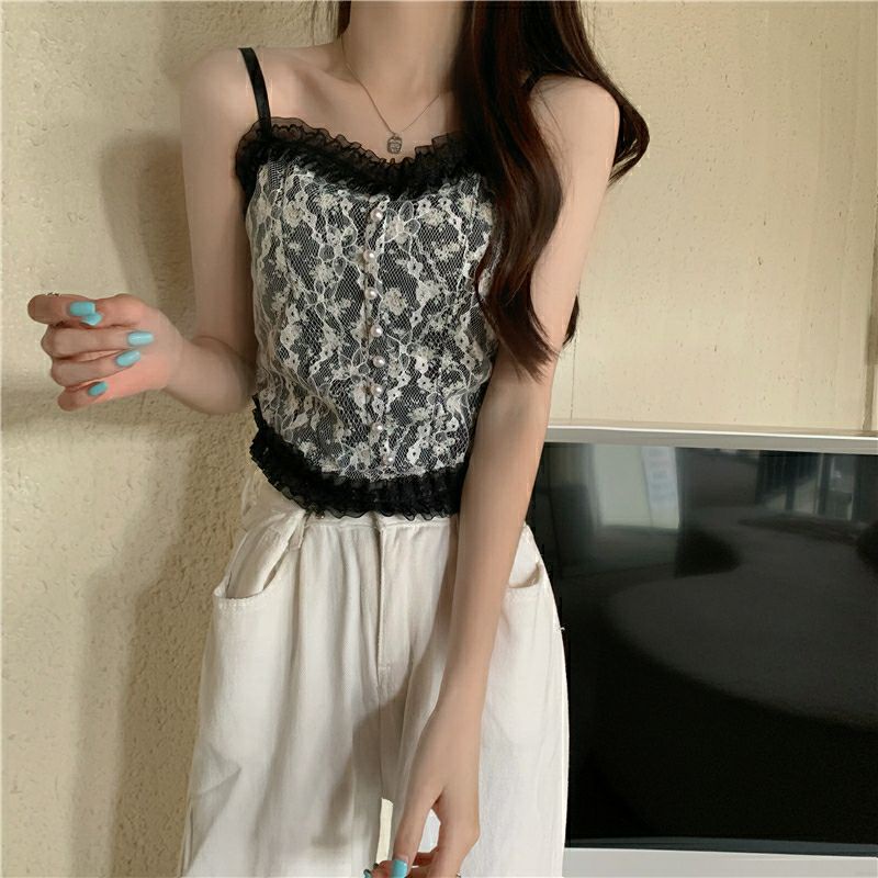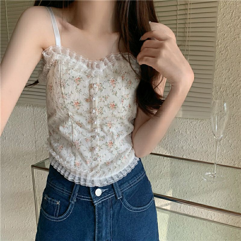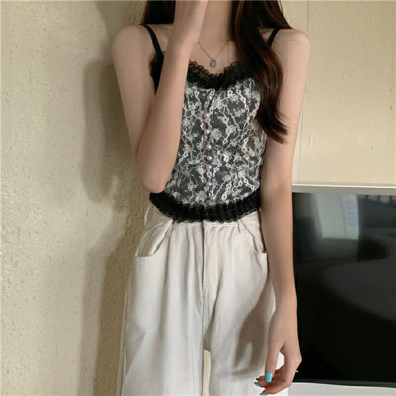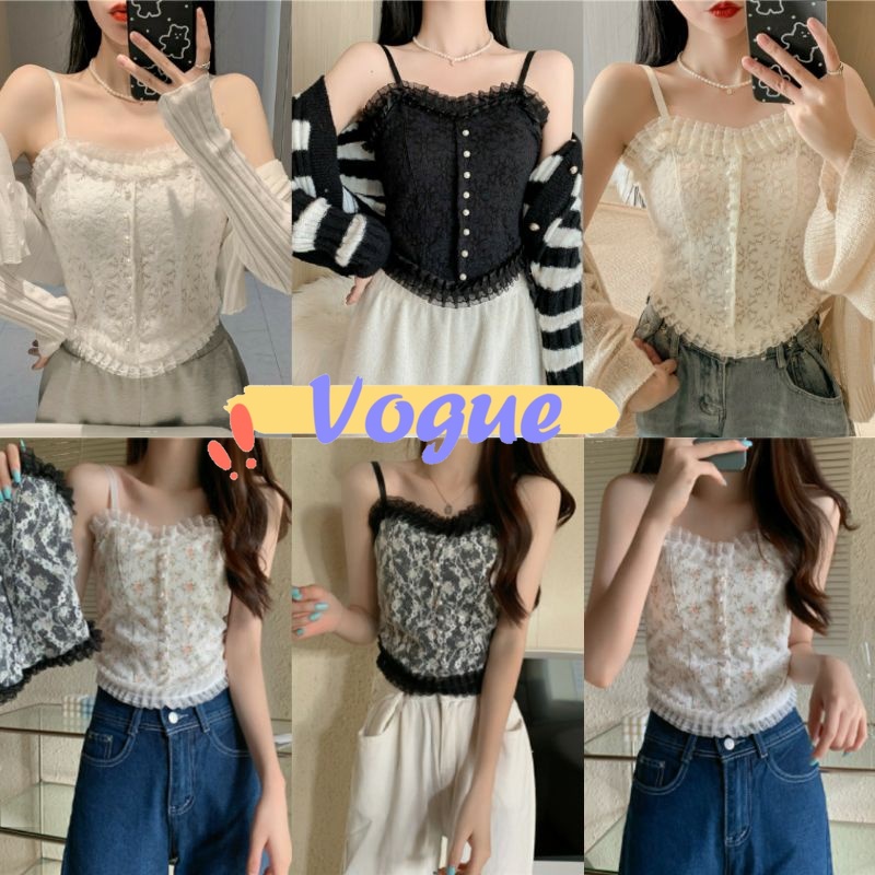 Vogue🌟พร้อมส่ง🌟 เสื้อสายเดี่ยวลูกไม้ 2 สี ฟองน้ำ ลายดอกไม้สุดเซ็กซี่ (FY3025/FY3024) -H-N