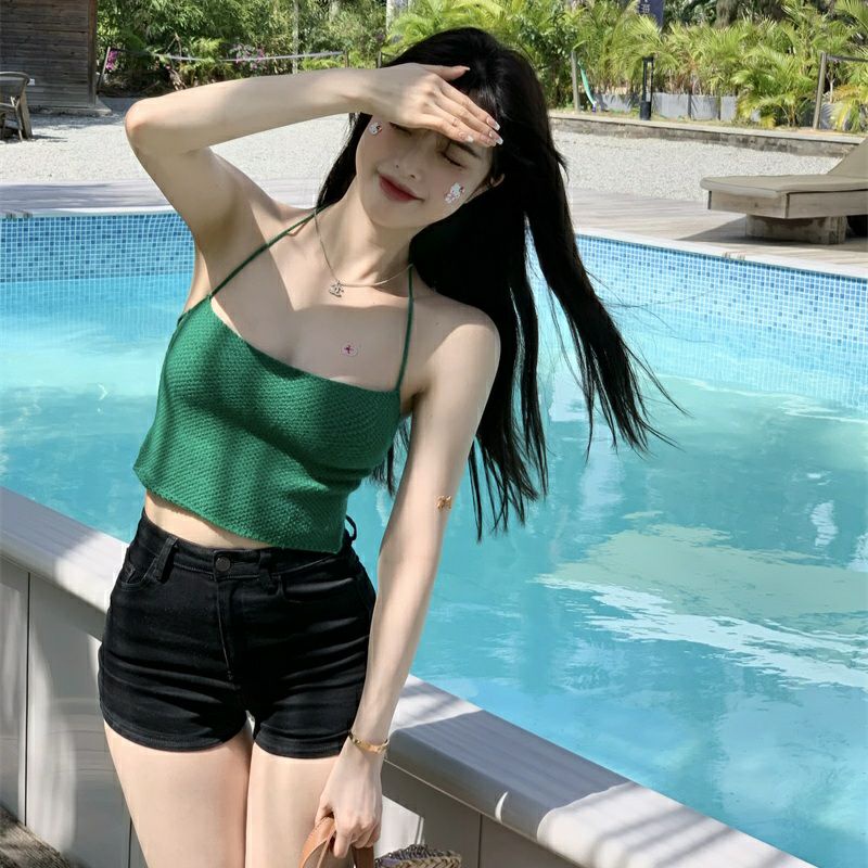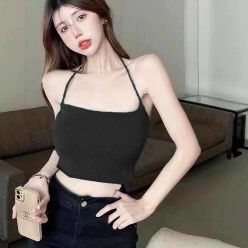 Vogue🌟พร้อมส่ง🌟 เสื้อสายเดี่ยวไหมพรม ดีเทลผูกหลังเว้าหลังสุดเซ็กซี่ (98076) -N