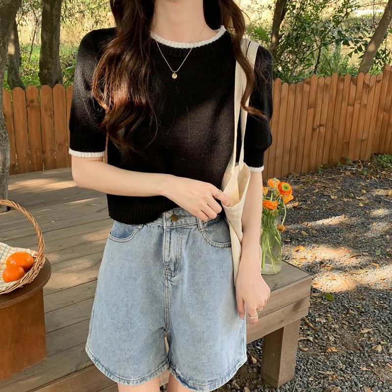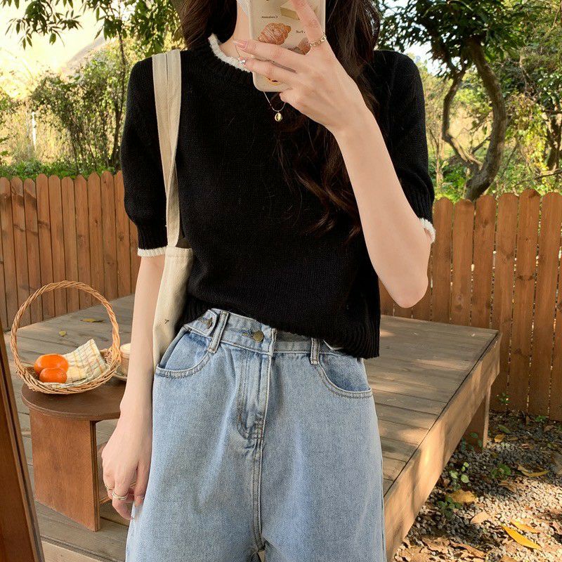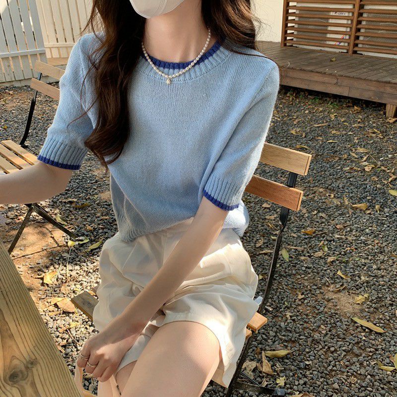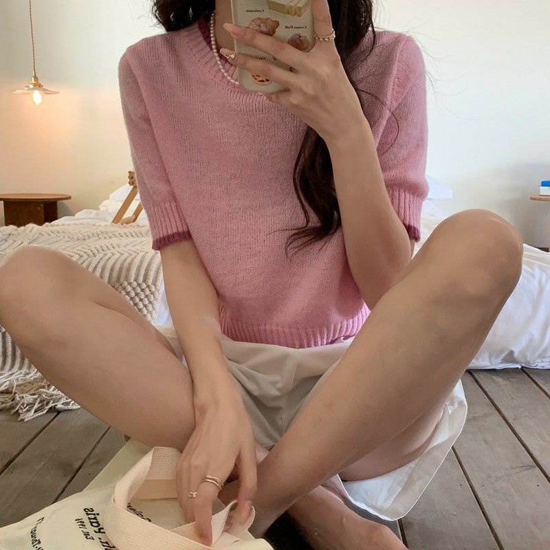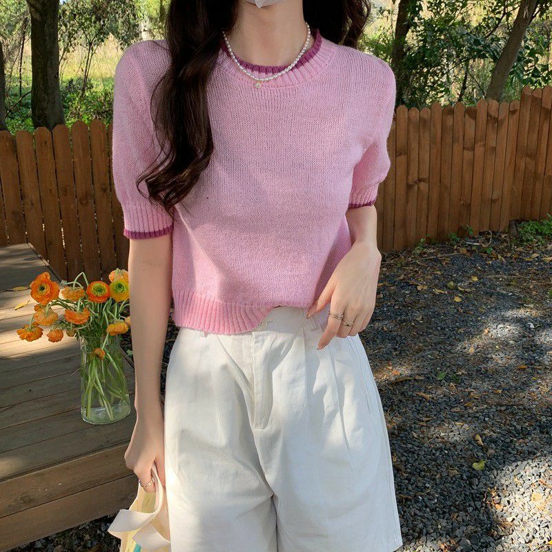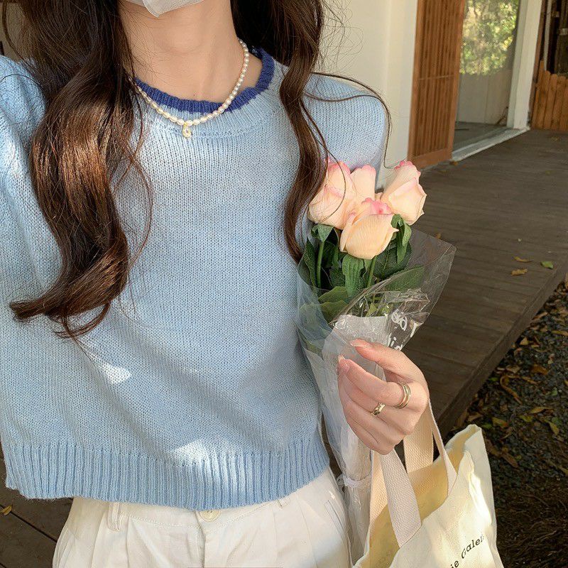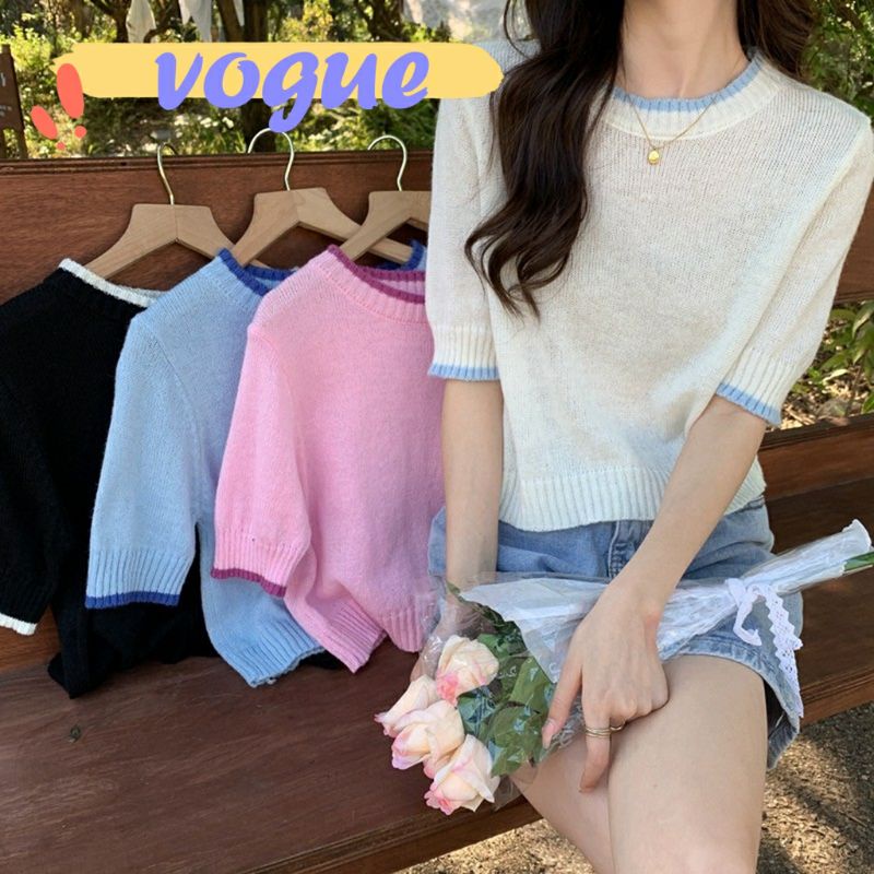 Vogue🌟พร้อมส่ง🌟 เสื้อถักไหมพรมแขนสั้น คอกลม สีพาสเทลน่ารักเกาหลีมาก (88615)