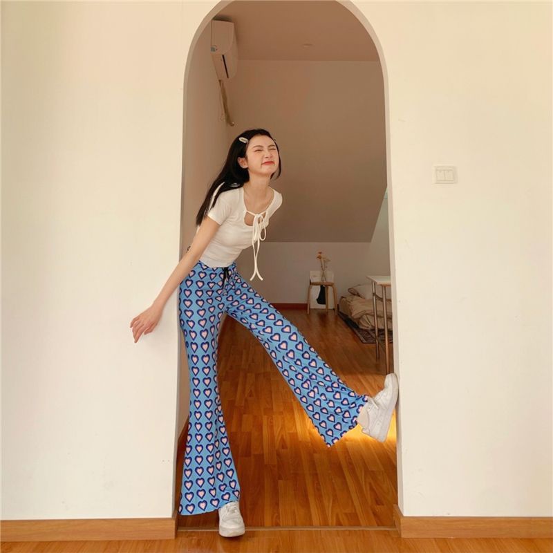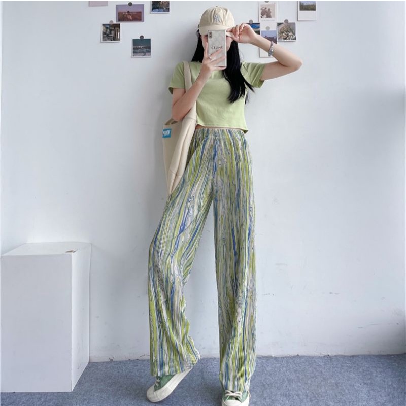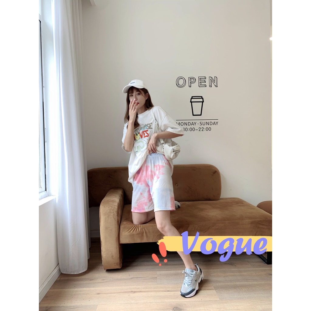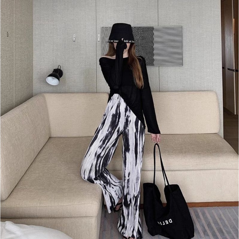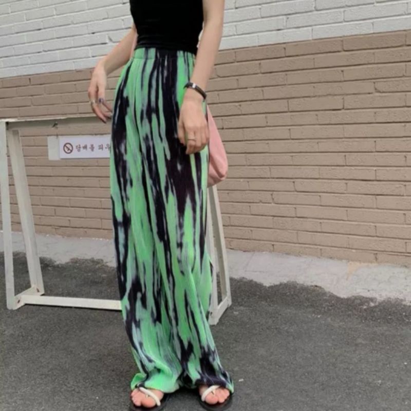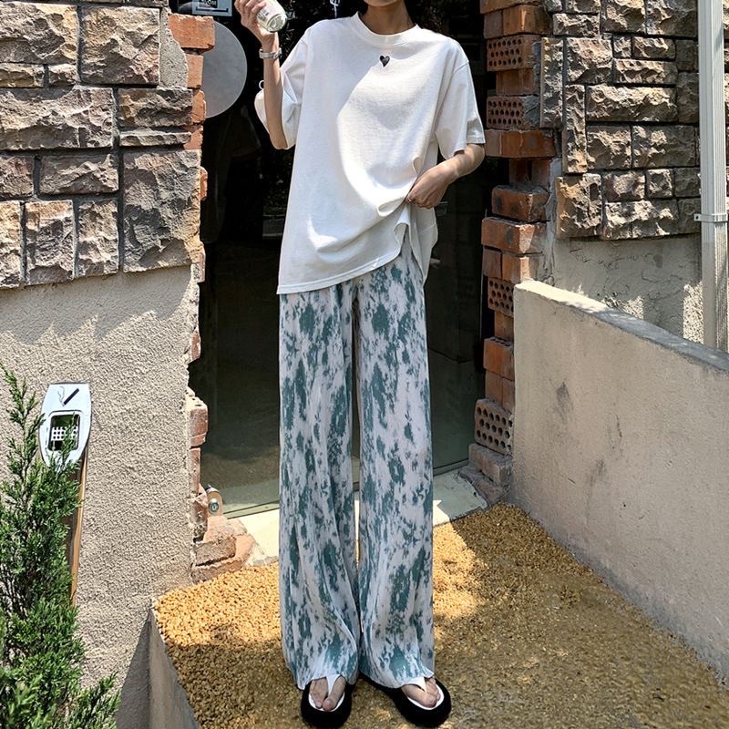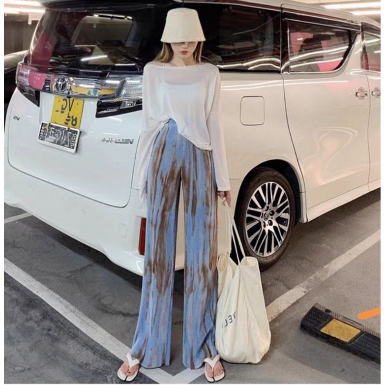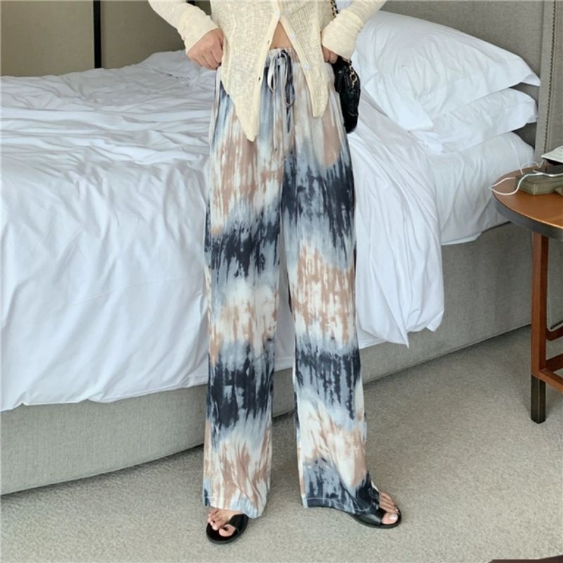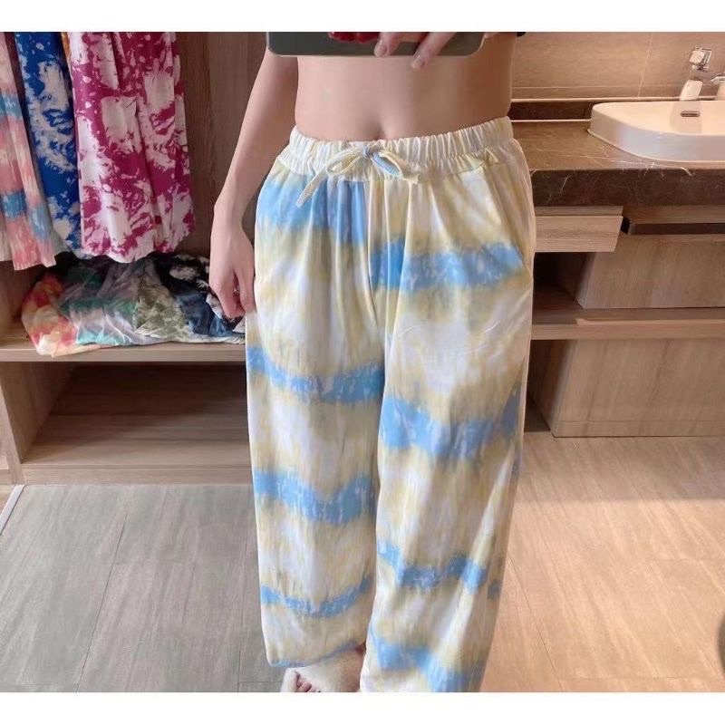 Vogue🌟 พร้อมส่ง🌟กางเกงมัดย้อมทรงหลวม เอวสูงขายาวผู้หญิงแฟชั่นสีพาสเทล👖ร้านโว๊ก ( A-KU) 01