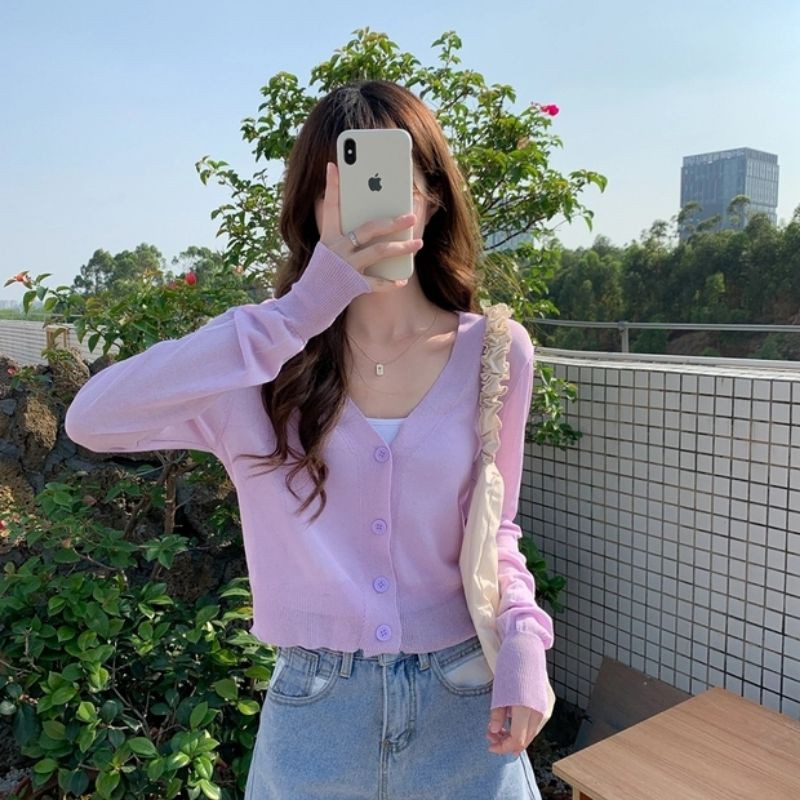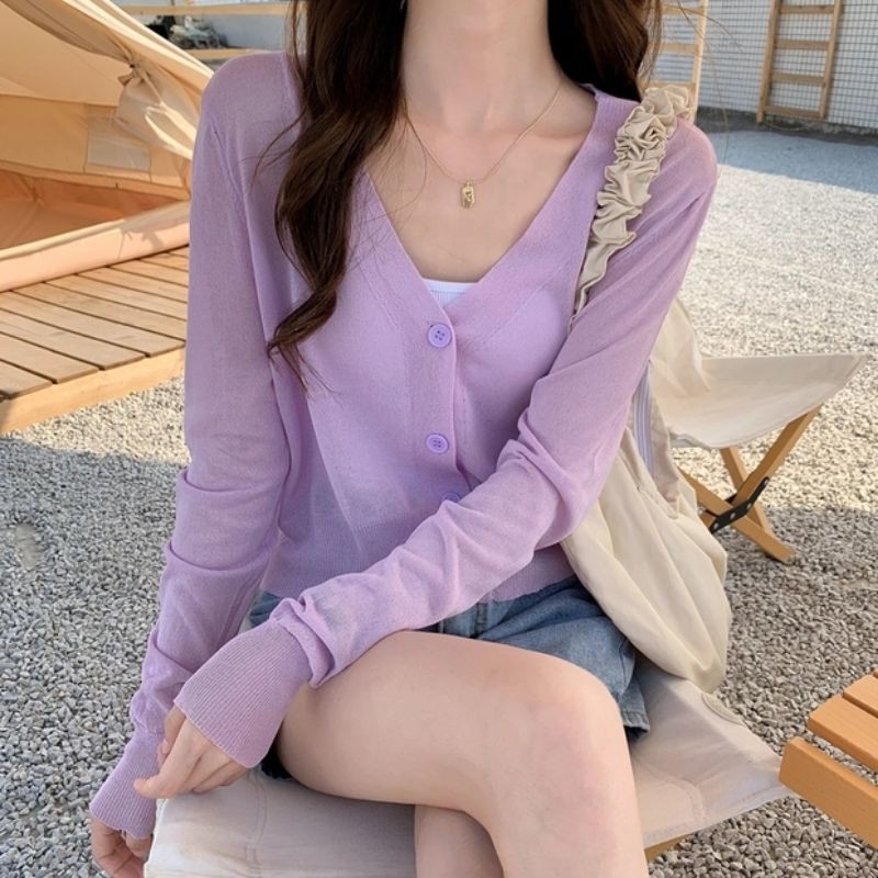 Vogue🌟พร้อมส่ง🌟เสื้อคลุมคาร์ดิแกนไหมพรม ผ้าซีทรูบางเบา (K278)