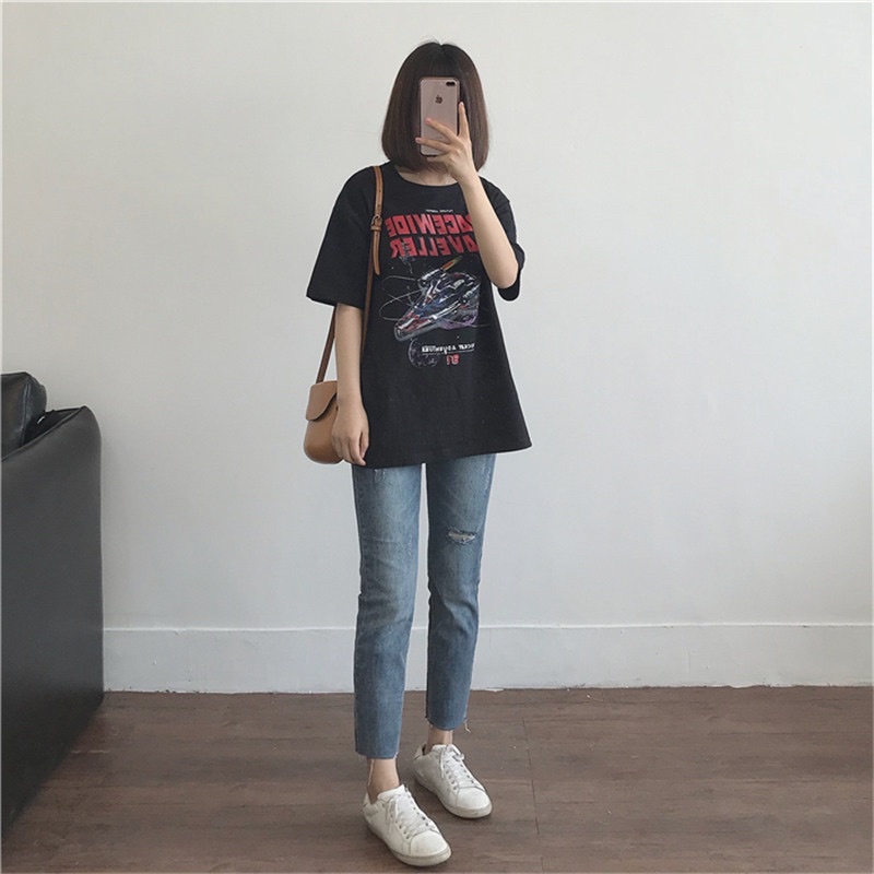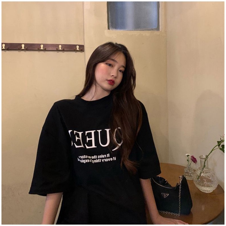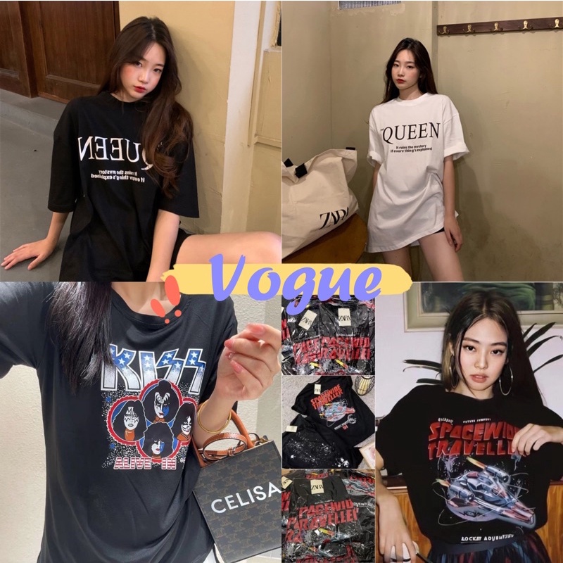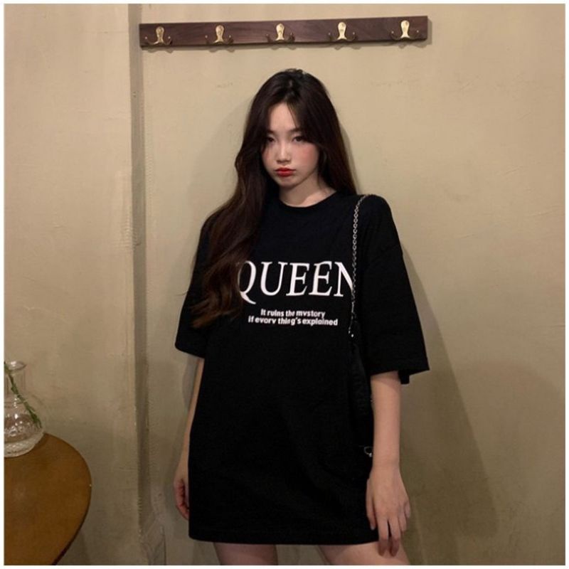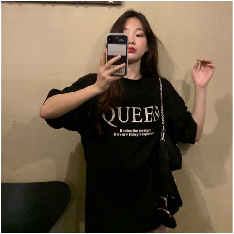 Vogue🌟พร้อมส่ง🌟เสื้อยืดแขนสั้นคอกลม ลาย Queen สีขาวดำใส่สบาย(DX-Queen-216) 03