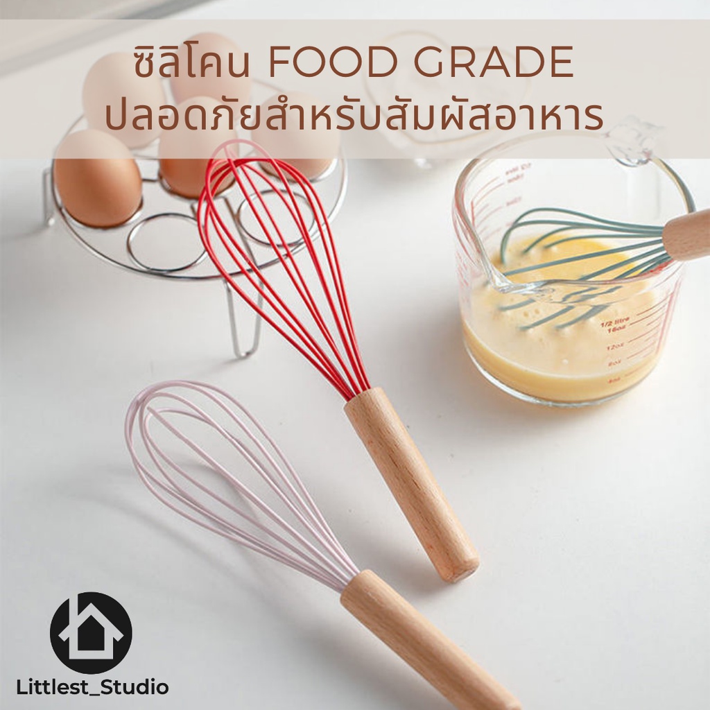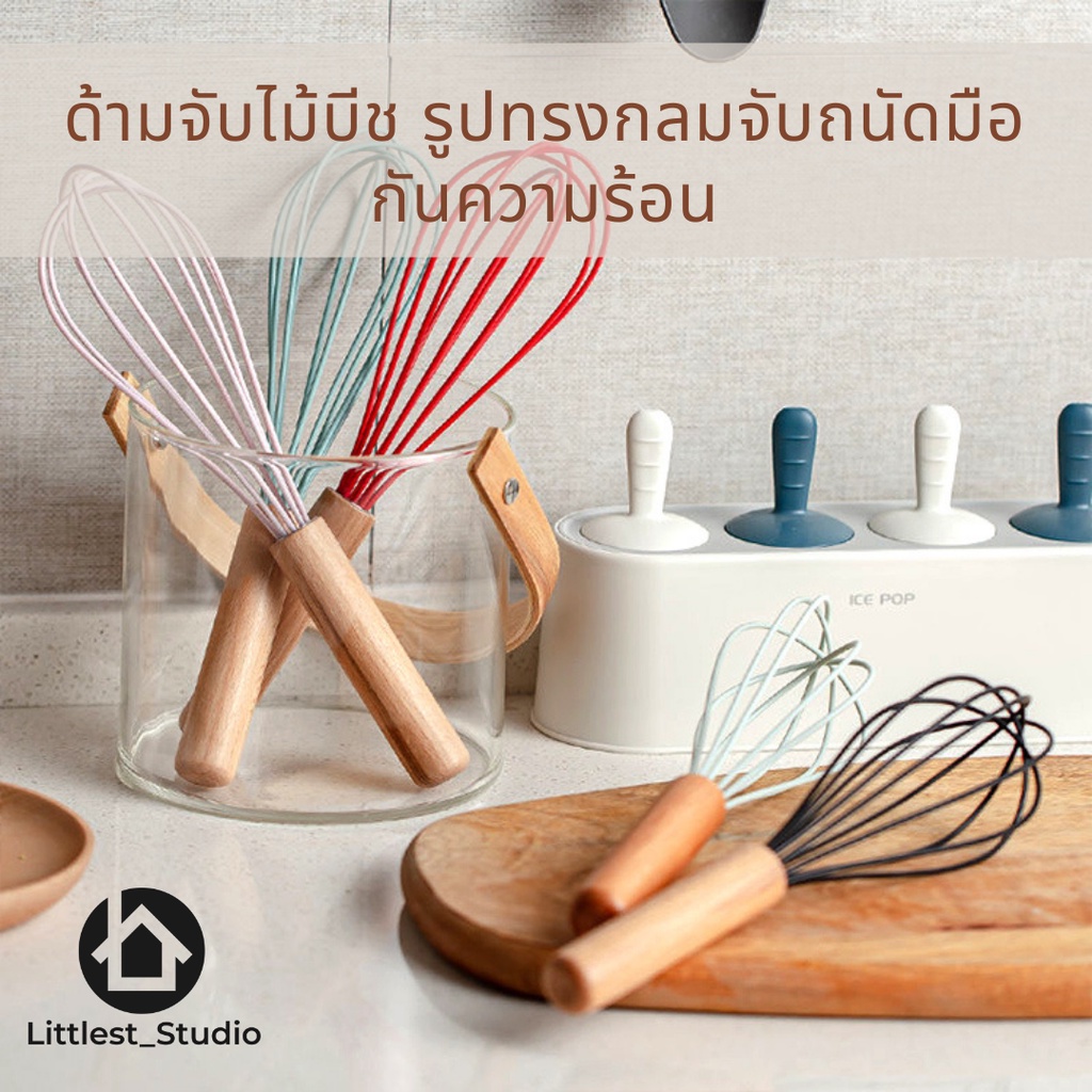 Littlest Studio ที่ตีไข่ ตะกร้อตีไข่ ขนาดใหญ่ 9" และ 10" ซิลิโคนด้ามไม้สีพาสเทล ทนความร้อน 220องศา