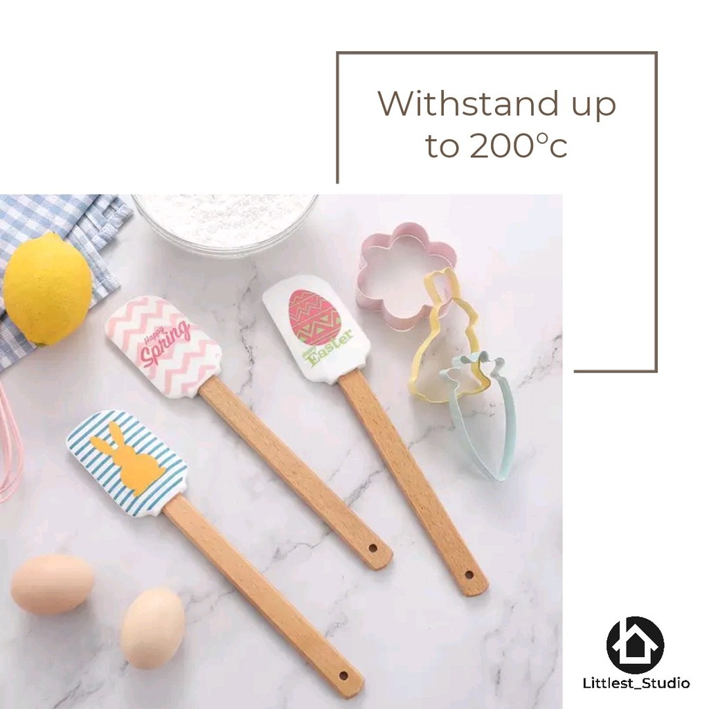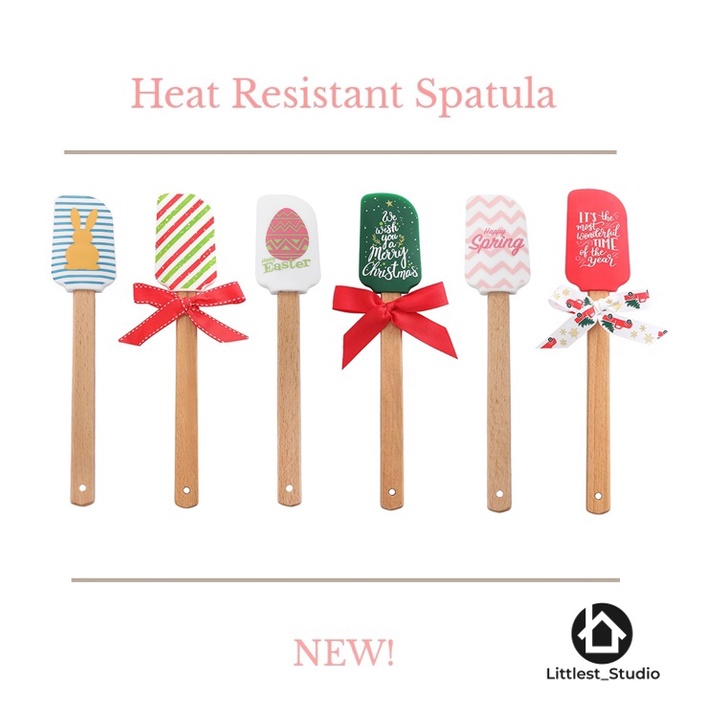 Littlest Studio ไม้พาย ไม้พายทนความร้อน ขนาด 26ซม ขนาดใหญ่ ซิลิโคนด้ามไม้ ไม้พายน่ารัก ตะหลิว