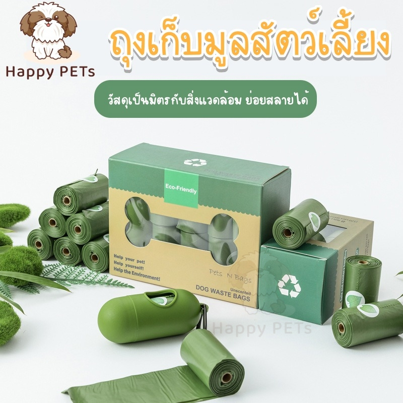 Happy PETs ถุงเก็บมูลสัตว์เลี้ยง อึหมา แมว ถุงขยะ ♻️ย่อยสลายได้เองโดยธรรมชาติ