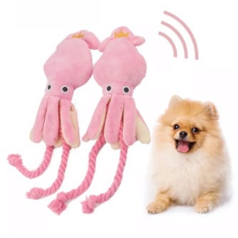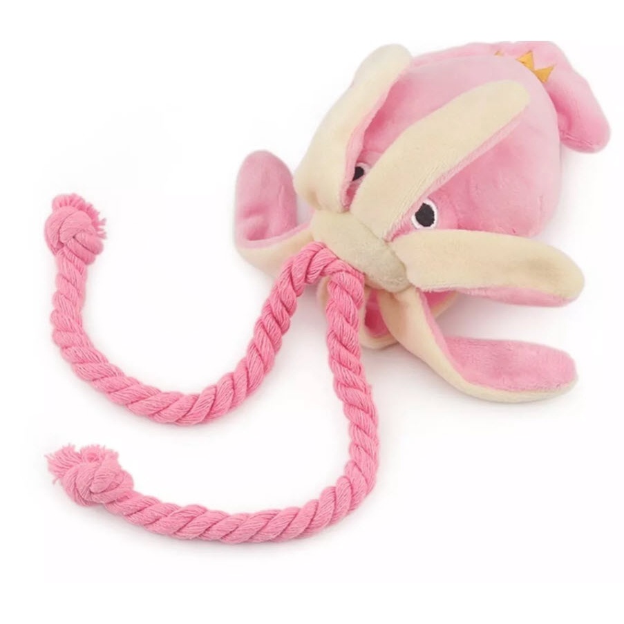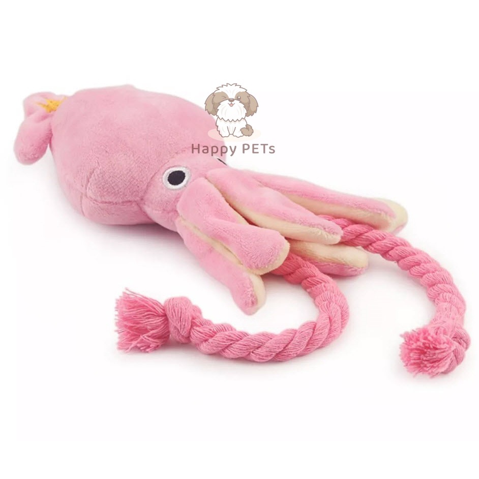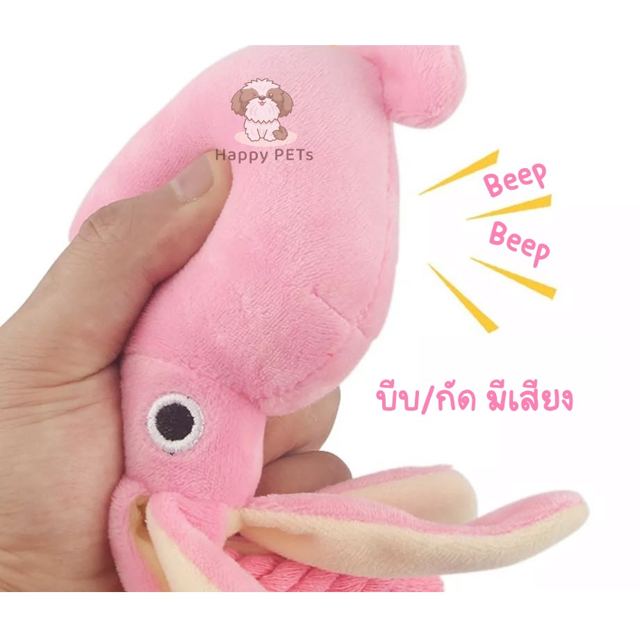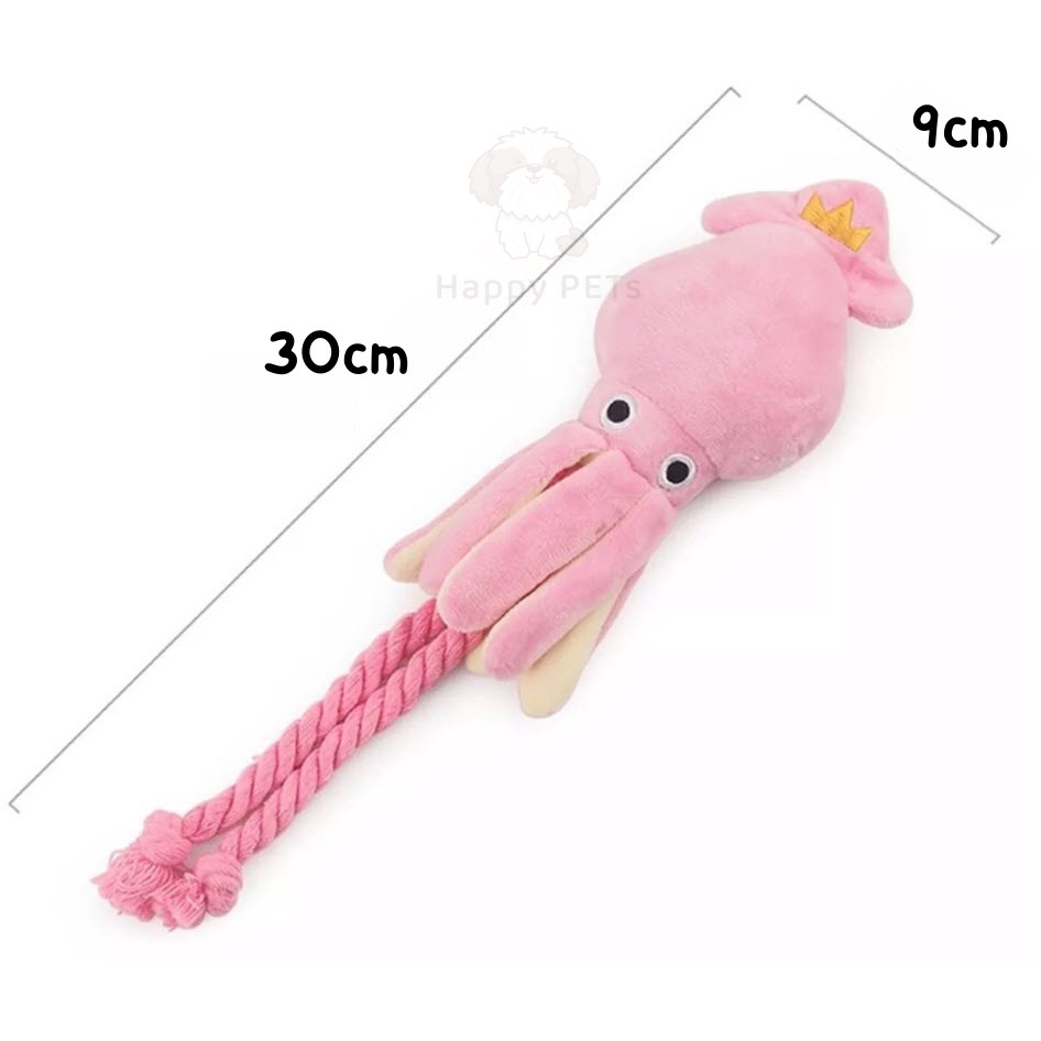 Happy PETs หมึกชมพู แต่งเชือก บีบ/กัดแล้วมีเสียง ของเล่นหมา ของเล่นแมว