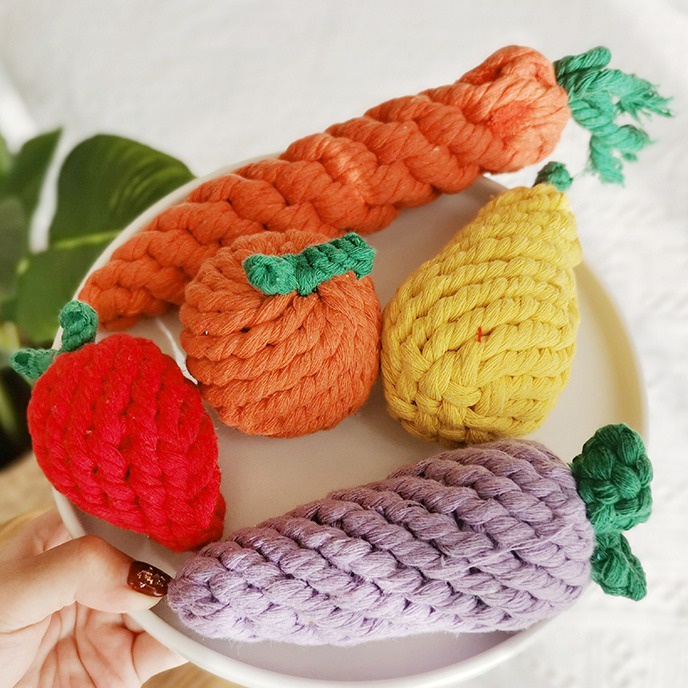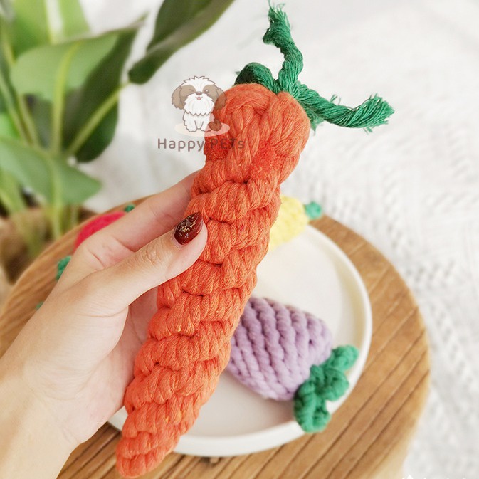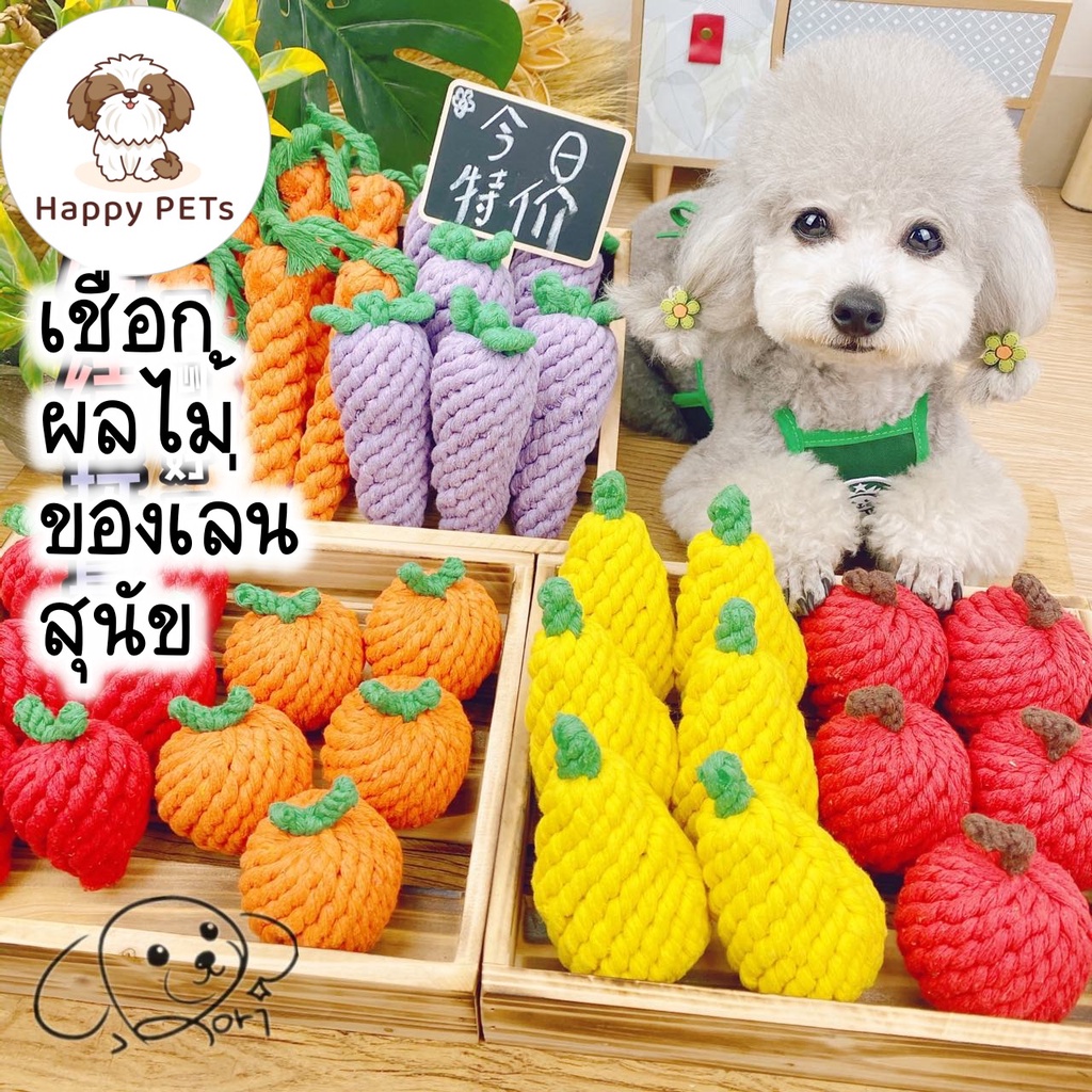Happy PETs เชือกขัดฟัน 🍓 รูปผลไม้ 🥕 ของเล่นสุนัข สีสันสดใส ของเล่นหมา