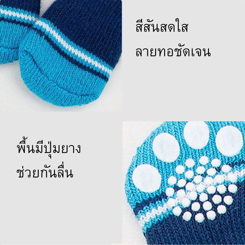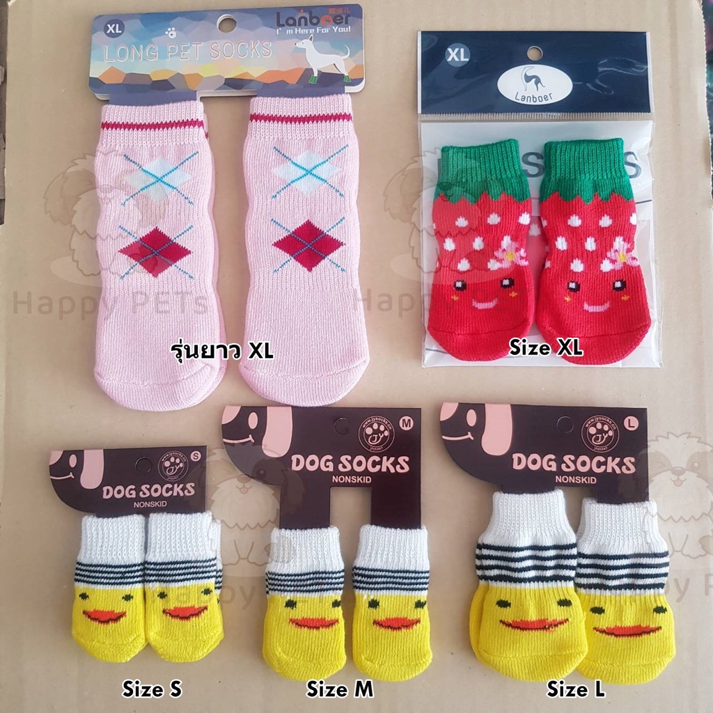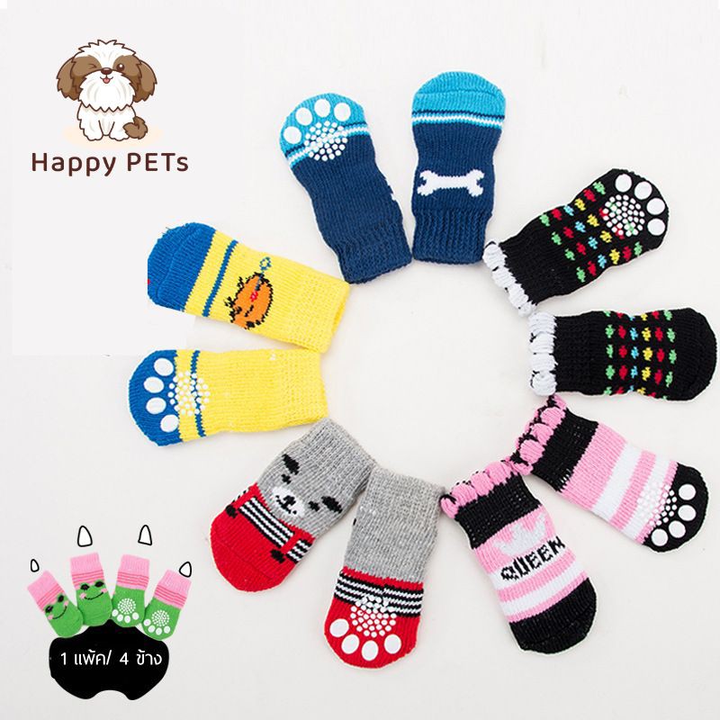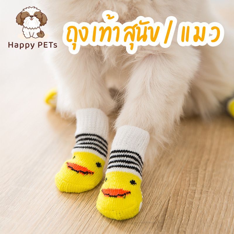 Happy PETs [เลือกลายได้]🐾ถุงเท้าสุนัข ถุงเท้าสัตว์เลี้ยง พื้นด้านล่างมียางกันลื่น ถุงเท้าแมว