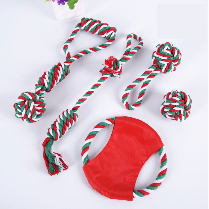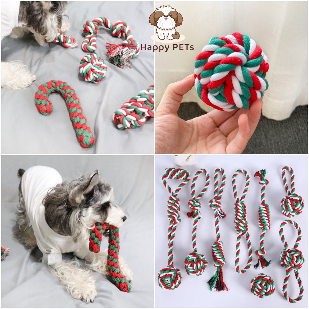 Happy PETs ของเล่นสุนัข เซ็ท คริสต์มาส เชือกช่วยขัดฟัน ของเล่นหมา เชือกของเล่นสุนัข