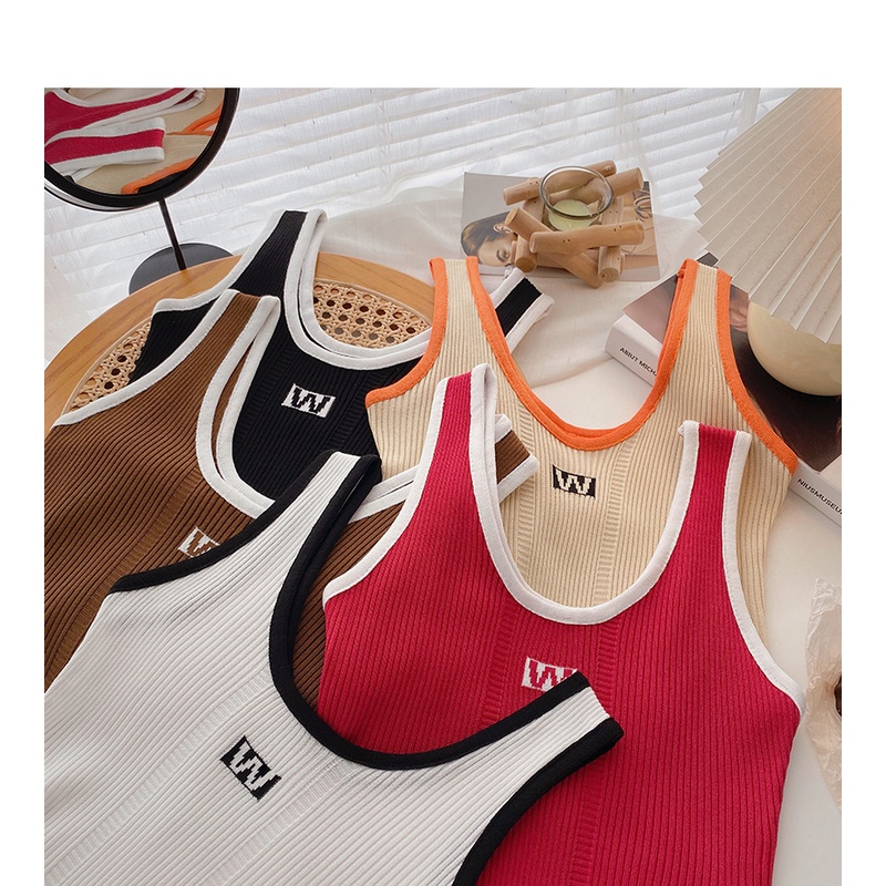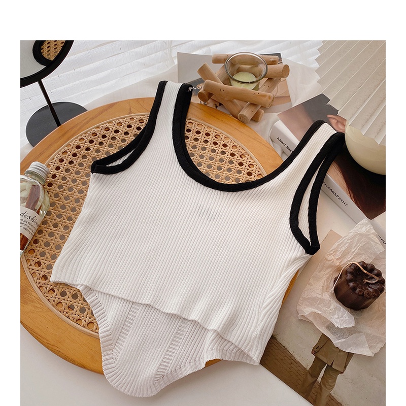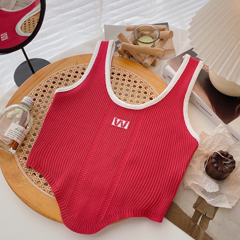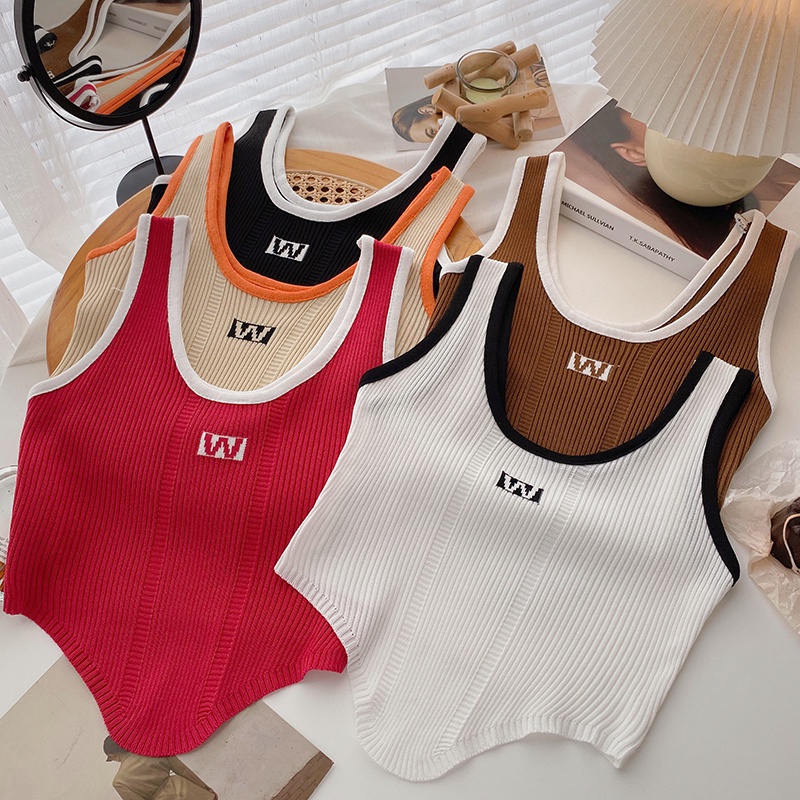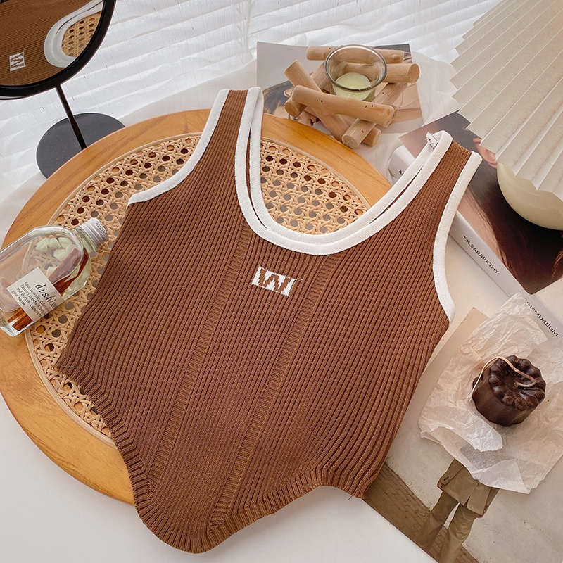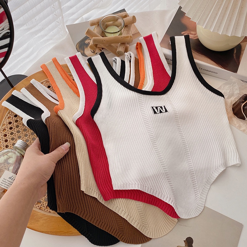 เสื้อสายเดี่ยว คอยู แขนกุด ผ้าถัก สีพื้น สไตล์เกาหลี แฟชั่นสำหรับผู้หญิง
