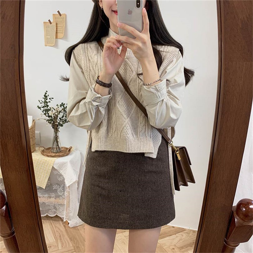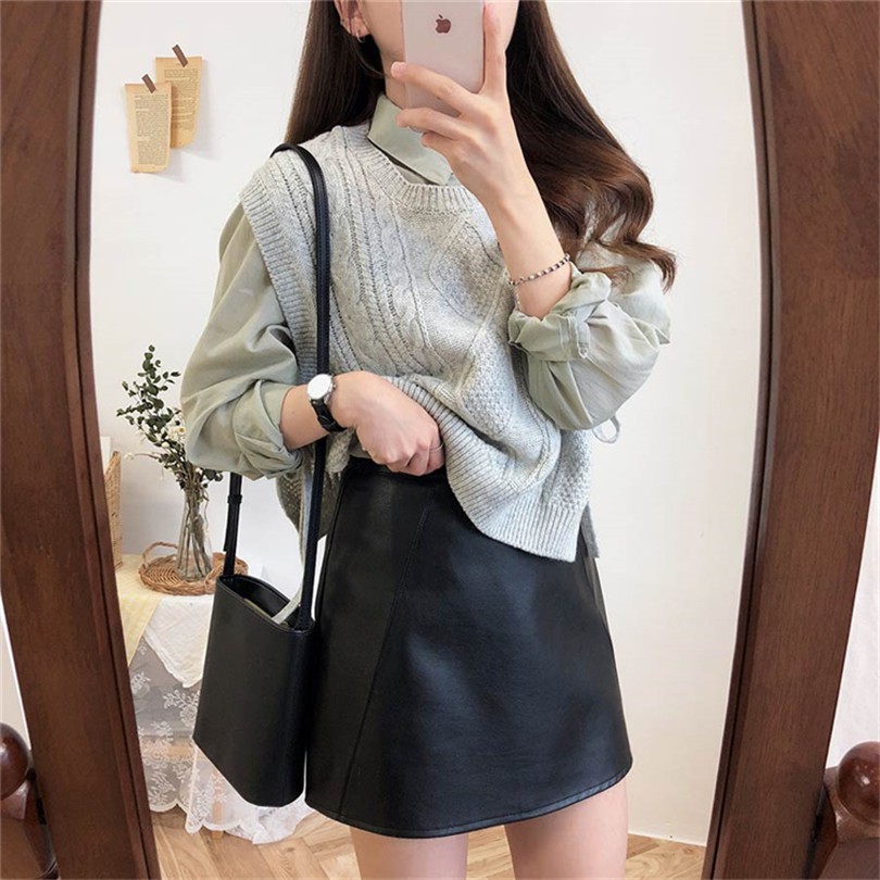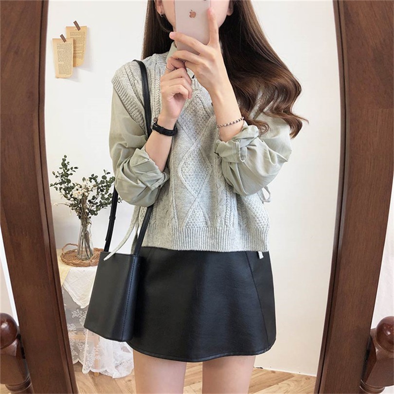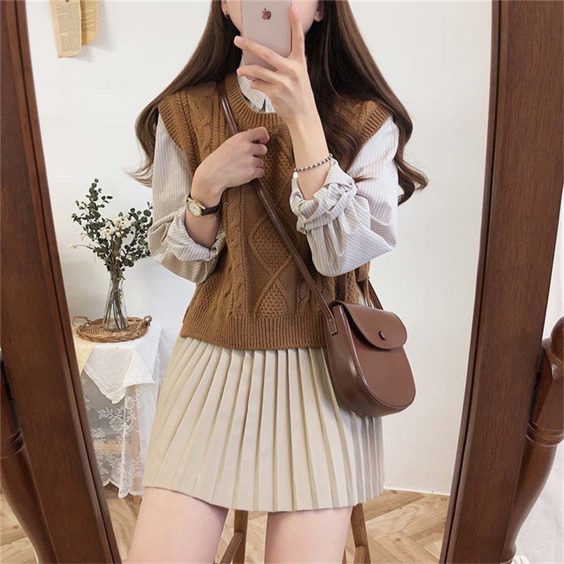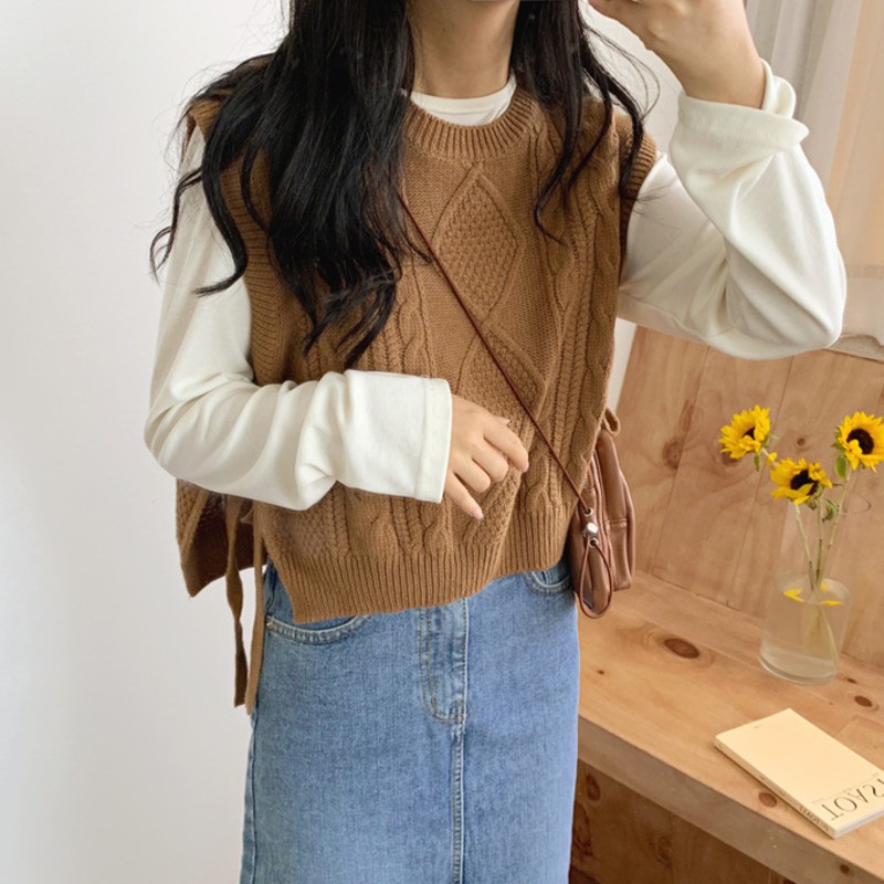 เสื้อกั๊กกันหนาว คอกลม แขนกุด ผ้าถัก ทรงหลวม สไตล์เกาหลี สําหรับผู้หญิง
