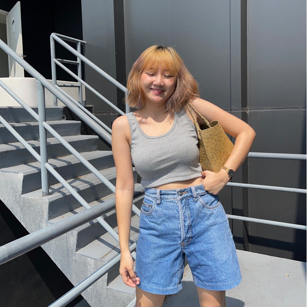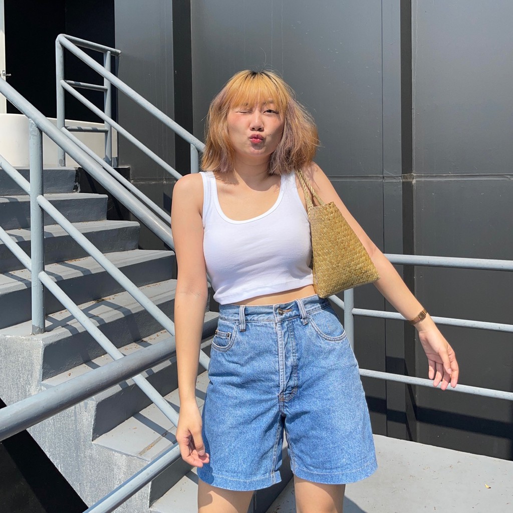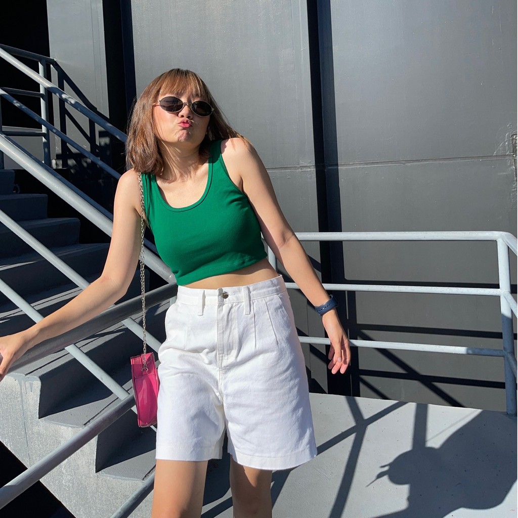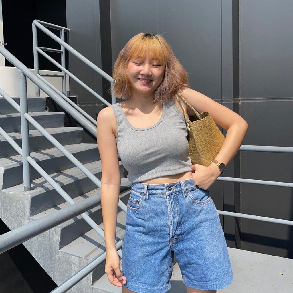 upeachme(E4,E5) Cott Tank Top [อก-40] มีราคาส่ง เสื้อกล้ามสั้นครอปท็อปสีพื้นผ้ายืดใส่สบาย