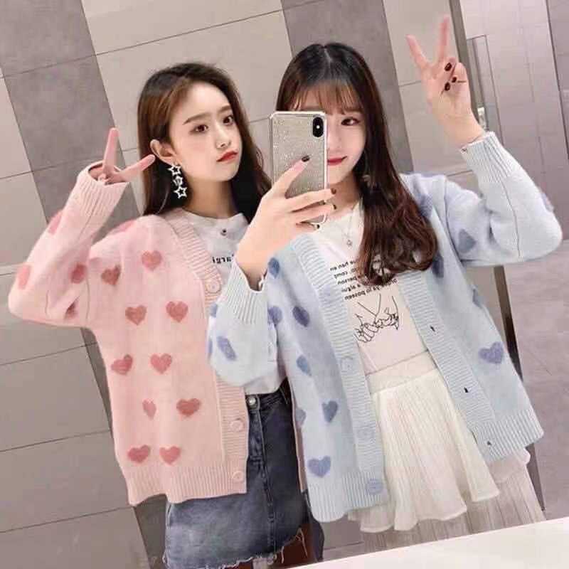 🌟เสื้อแขนยาวไหมพรม ขนนิ่มยืดแต่งลายหัวใจ เสื้อกันหนาวไหมพรมพาสเทล ใส่แมทกับอะไรก้อดูดี สีสดใส ผ้านิ่ม น่ารัก