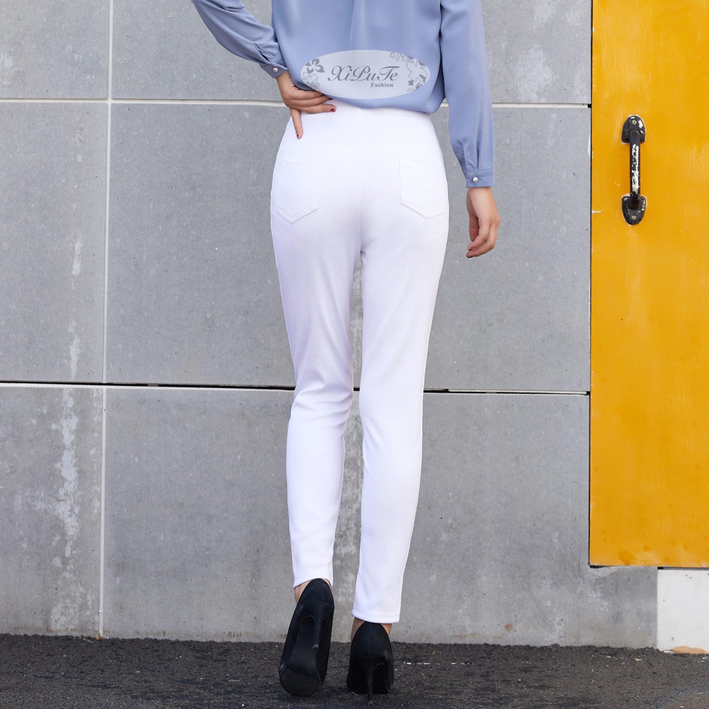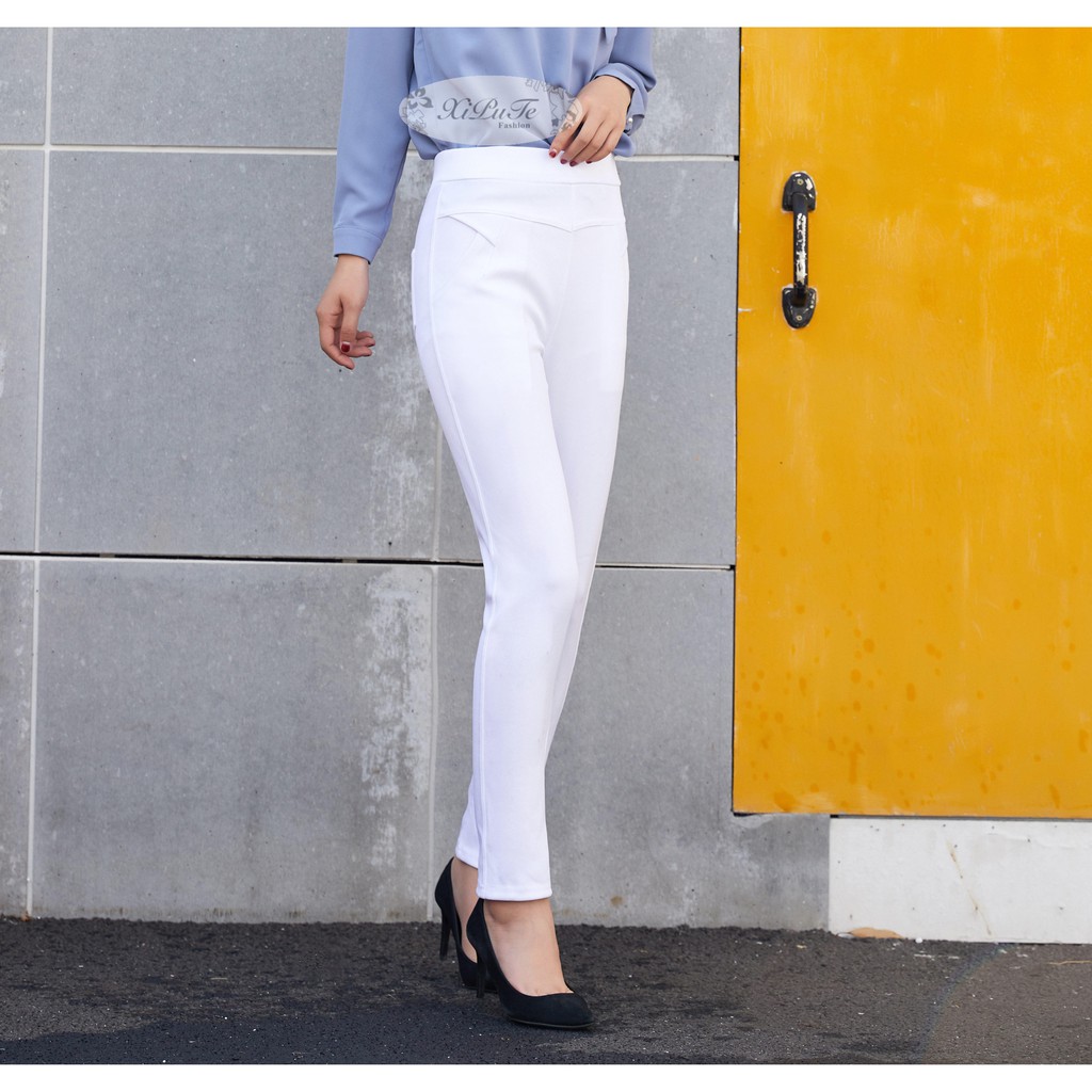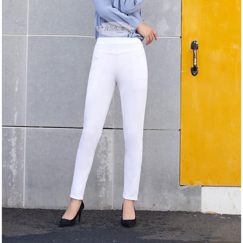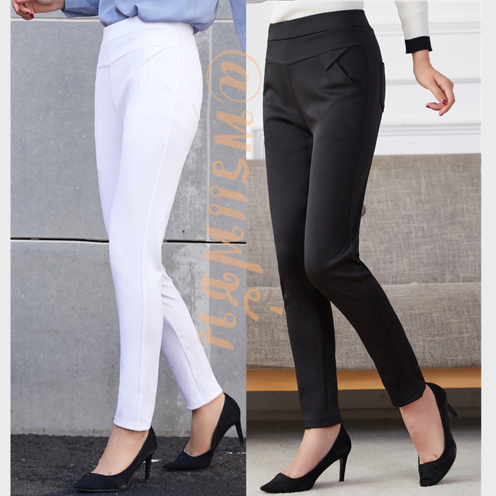 รุ่น 9108⭐⭐⭐⭐⭐กางเกงทํางานผู้หญิงขายาวสีขาว สีดำทรงแฟชั่นเกาหลี ผ้ายืดได้ สีพื้นทรงสวยใส่สบาย 9102#