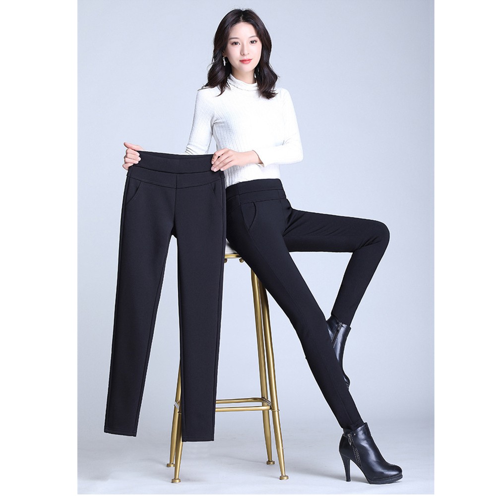 รุ่น9105กางเกงสีขาว ขายาวแฟชั่นผู้หญิงใส่ทำงาน มีกระเป๋า ผ้าเกาหลีสีดําผ้ายืดได้ตามตัวเนื้อผ้านุ่ม
