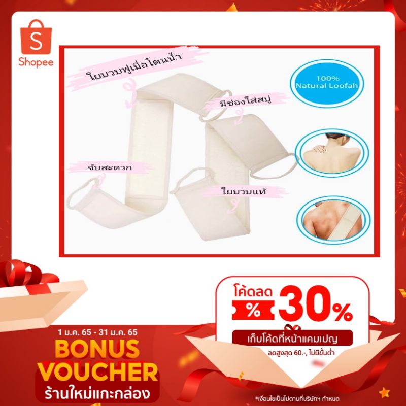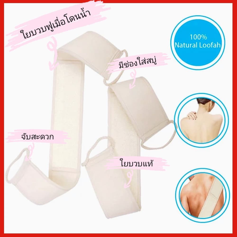 ใยบวบ ใยบวบขัดหลัง ขัดผิว มีสายคล้อง ใยบวบแท้100% สำหรับถูหลัง 1 ชิ้น