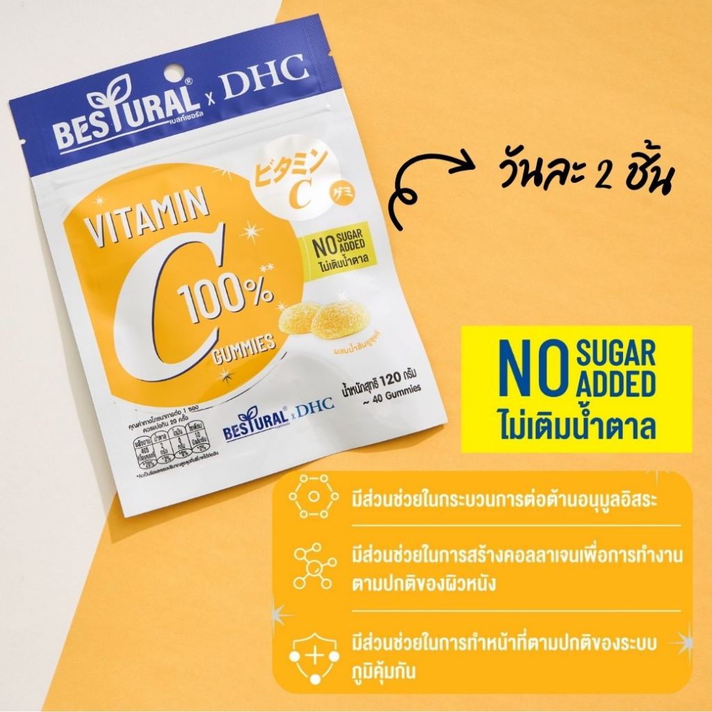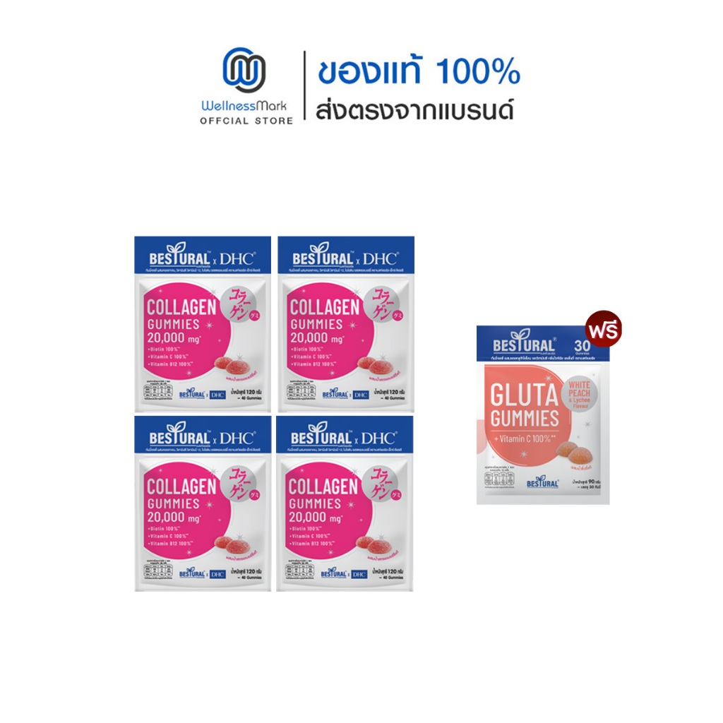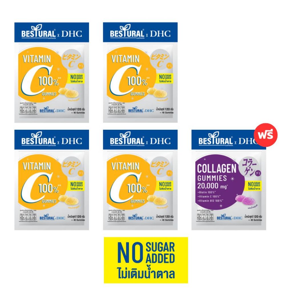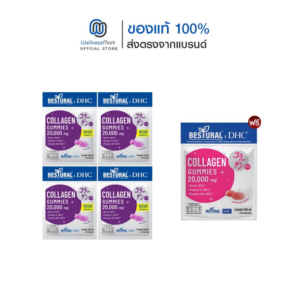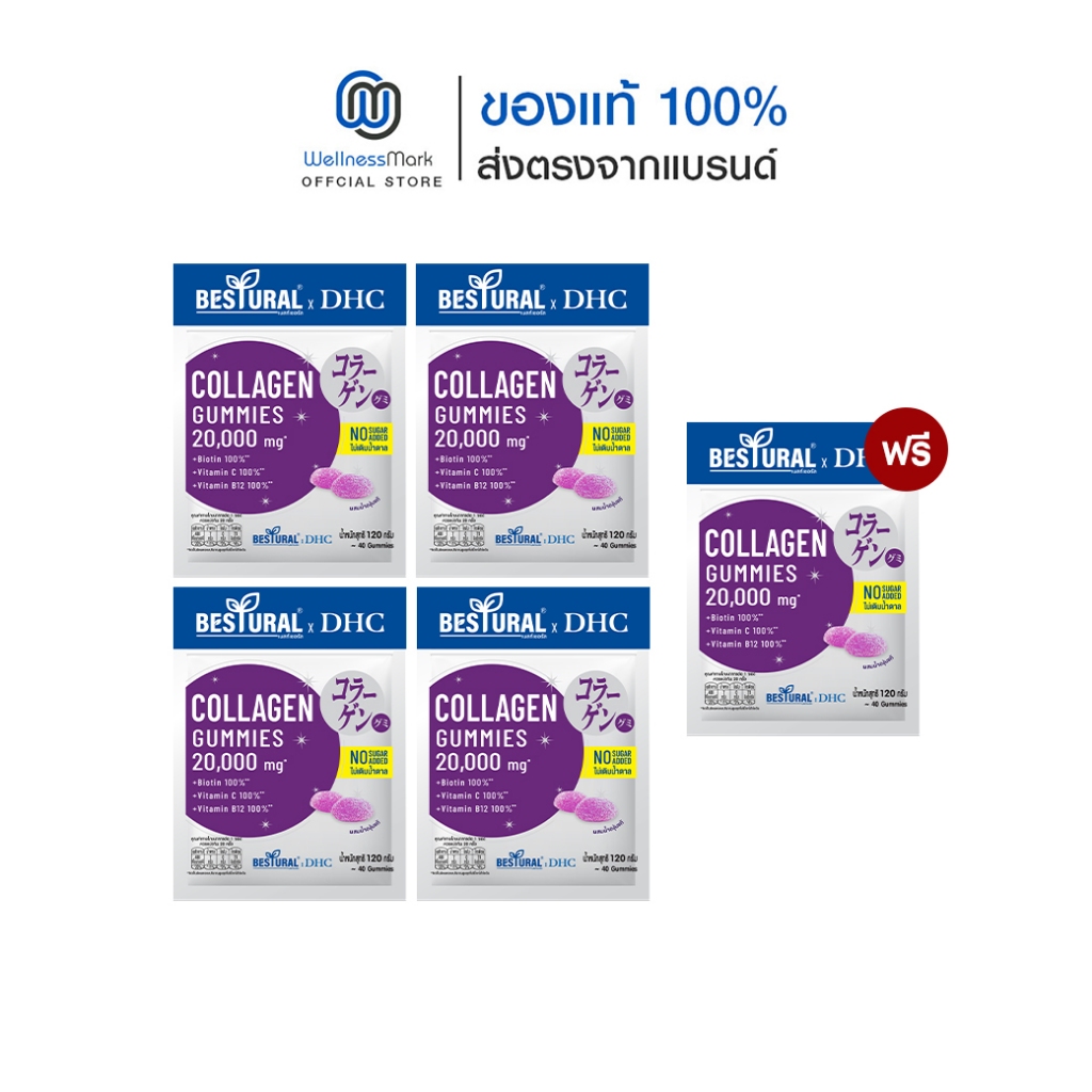 DHC X Bestural คอลลาเจน (สูตรไม่เติมน้ำตาล) (40 เม็ด) 4 ซอง + แถมฟรี 1 ซอง