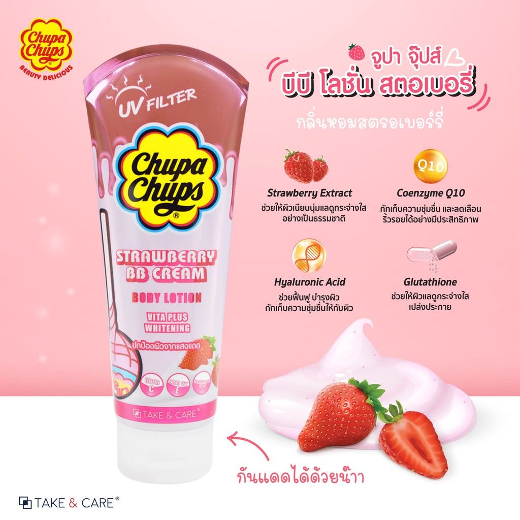 Chupa Chups Strawberry Cream Body Lotion BB Pink 200ml.
