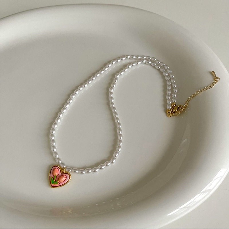 พร้อมส่ง💖สร้อยคอลูกปัดดอกทิวลิป น่ารัก สไตล์ลูกคุณหนู NL142