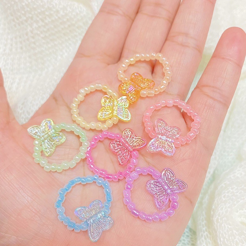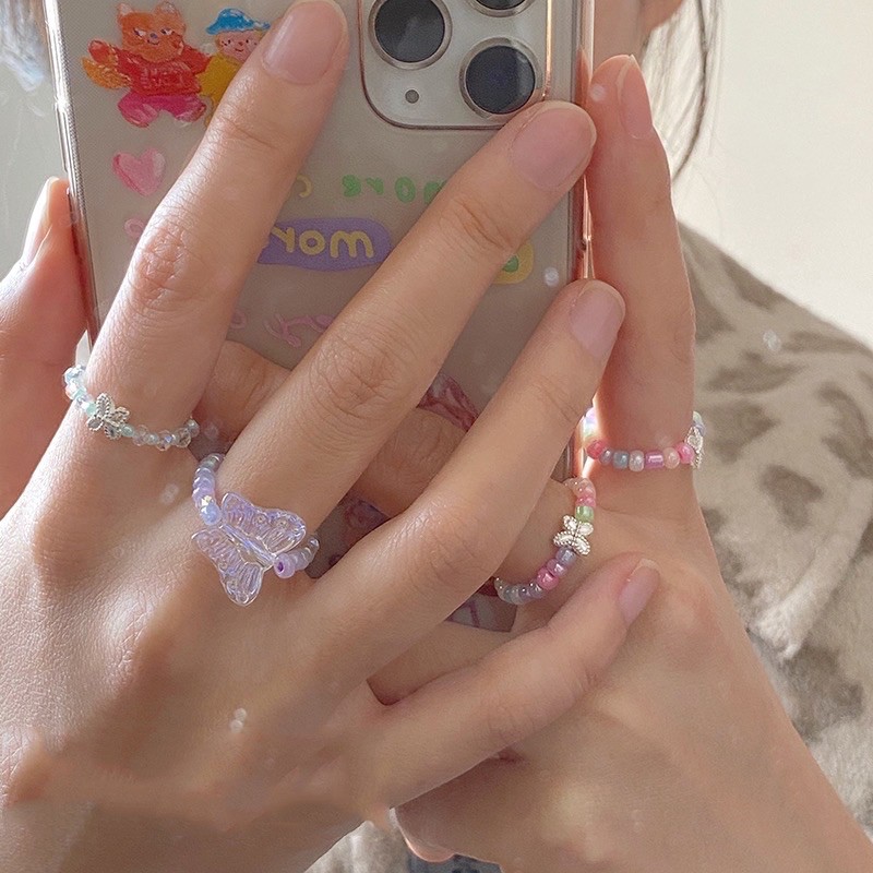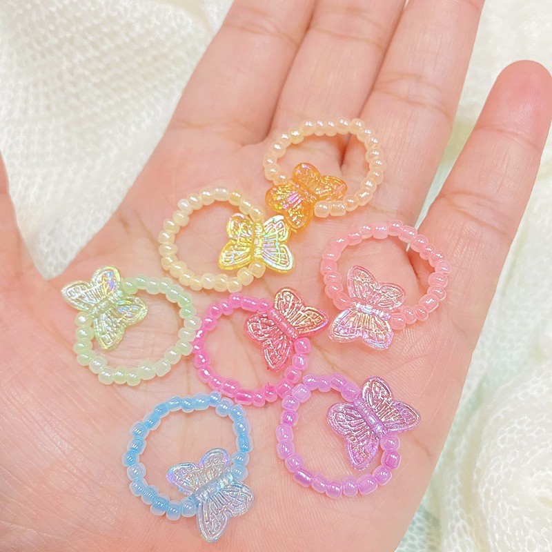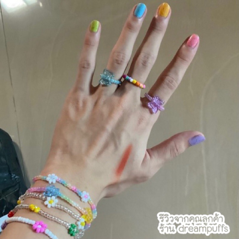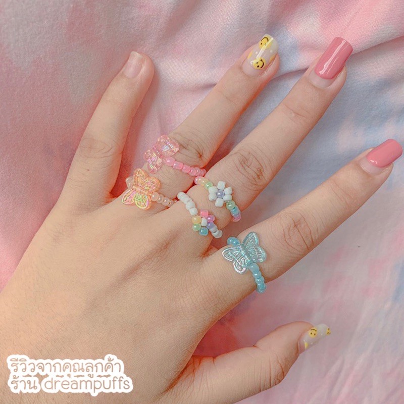 ส่งด่วน🔥แหวนลูกปัดผีเสื้อ🦋ยืดได้น่ารักกรุบกริบสายเกา