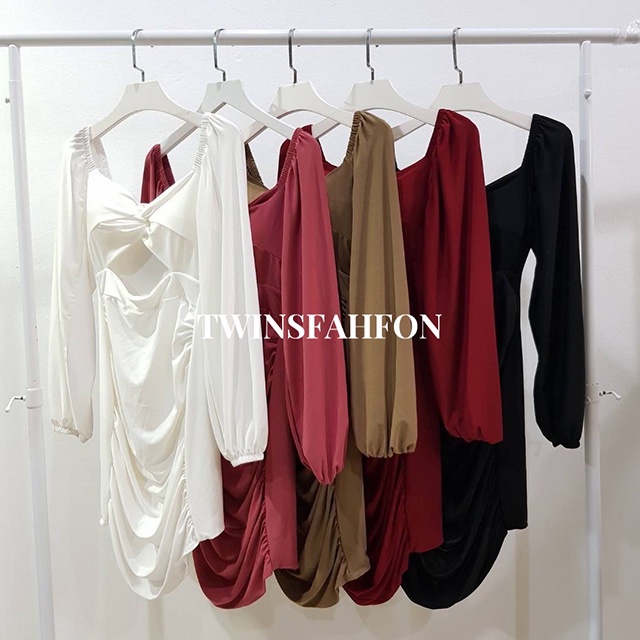 New arrivals Crystal dress ✨ เดรสแขนยาวจับพองทรงที่ตามหา Free Size | Twinsfahfon
