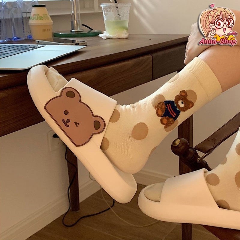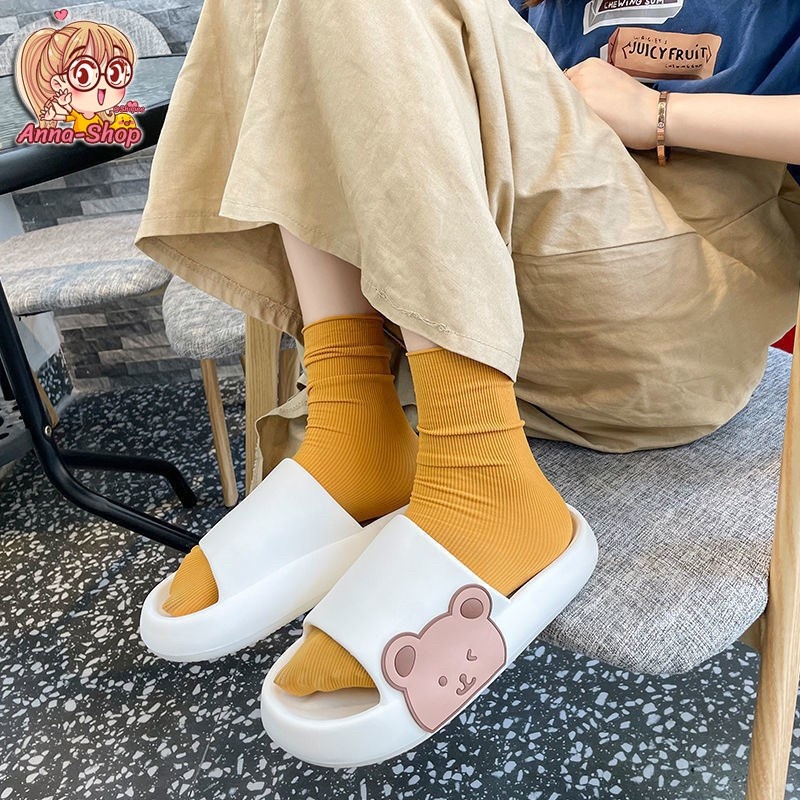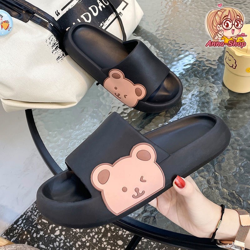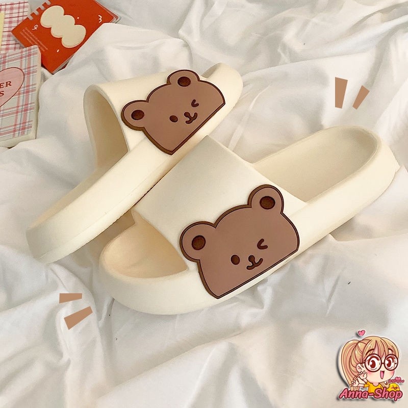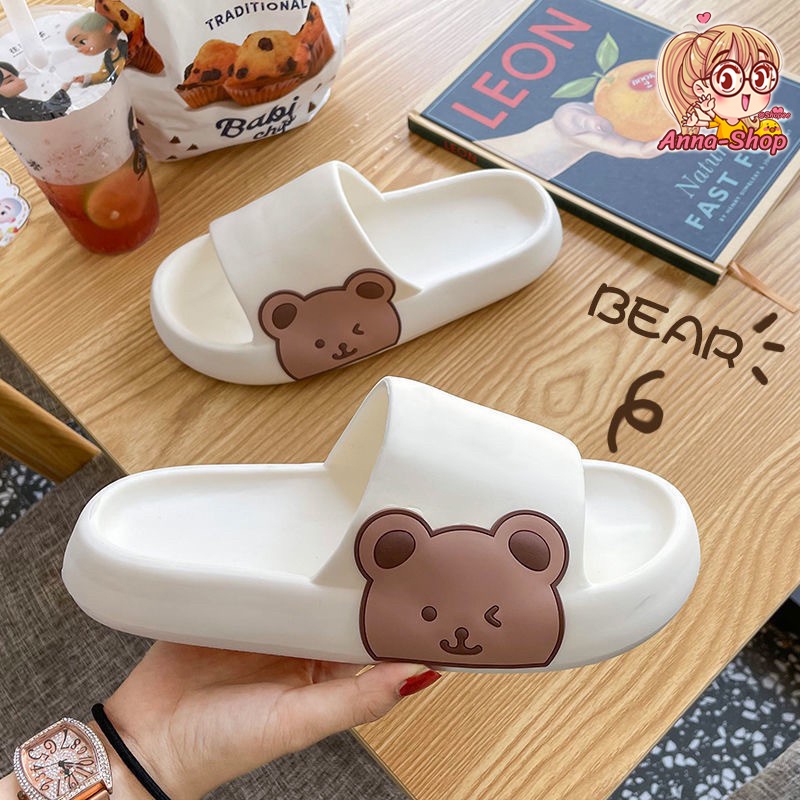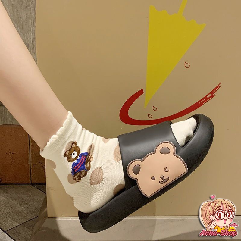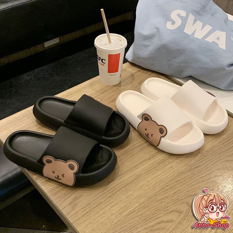 รองเท้าแตะผู้หญิง 🩰รองเท้าแตะสวม แฟชั่นเกาหลี 🥿แต่งรูปหมีด้านข้างน่ารัก สวมใส่สบาย พื้นนิ่ม T47
