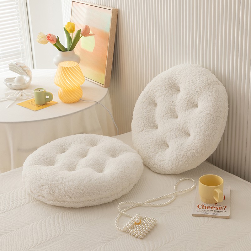 CUFF เบาะรองนั่ง หมอนรองนั่ง นุ่มสบาย ดีไซน์น่ารักทรงกลม สีเบจสไตล์ญี่ปุ่น minimal ขนาด 40*40 CM