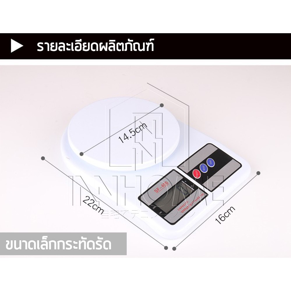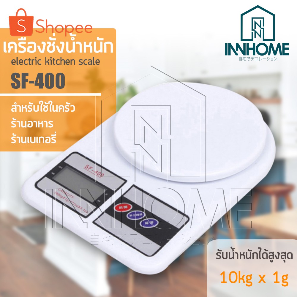 InnHome เครื่องชั่งอาหาร เครื่องชั่งน้ำหนักดิจิตอล ตาชั่ง SF-400 (รับน้ำหนักได้สูงสุด10 กิโลกรัม) แถมถ่านAA จำนวน2 ก้อน