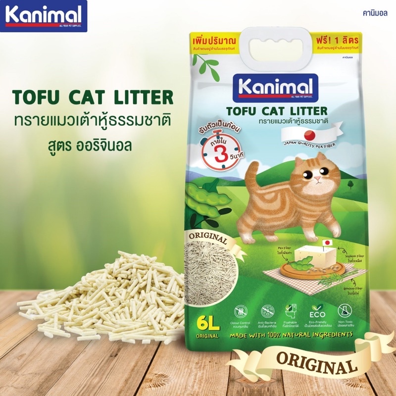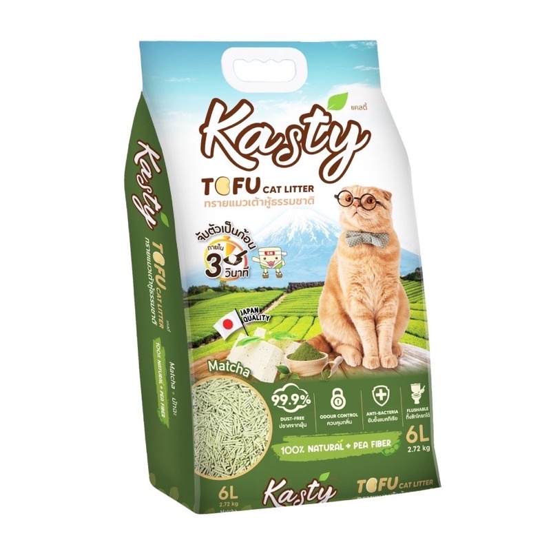 Kasty แคสตี้ Kanimal ทรายแมวเต้าหู้ธรรมชาติ 6 ลิตร ไร้ฝุ่น ดับกลิ่นดี จับตัวเร็ว ทิ้งชักโครก